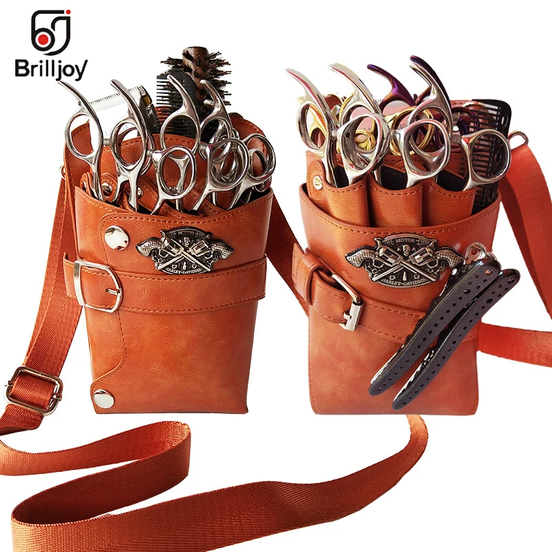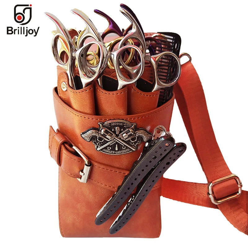 Профессиональная сумка для парикмахерских ножниц, сумка из искусственной кожи с зажимами, чехол-держатель для парикмахерских ножниц, чехол с ремнем на плече