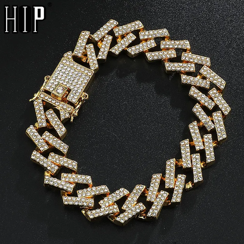 Цепочка кубинская в стиле хип-хоп 15 мм 20 см Украшенная Цирконом Стразы мужские браслеты с покрытием AAA ювелирные изделия для мужчин