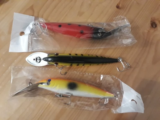 Заказал такие воблеры первый раз, с металлической лопаткой. Интересный вариант, мне кажется что подгибая лопатку можно регулировать глубину погружения. На вид качественные. Единственное, я заказал пять разных цветов, а продавец прислал два одинаковых, и видимо в качестве извинения положил два крючка. Претензий нет.