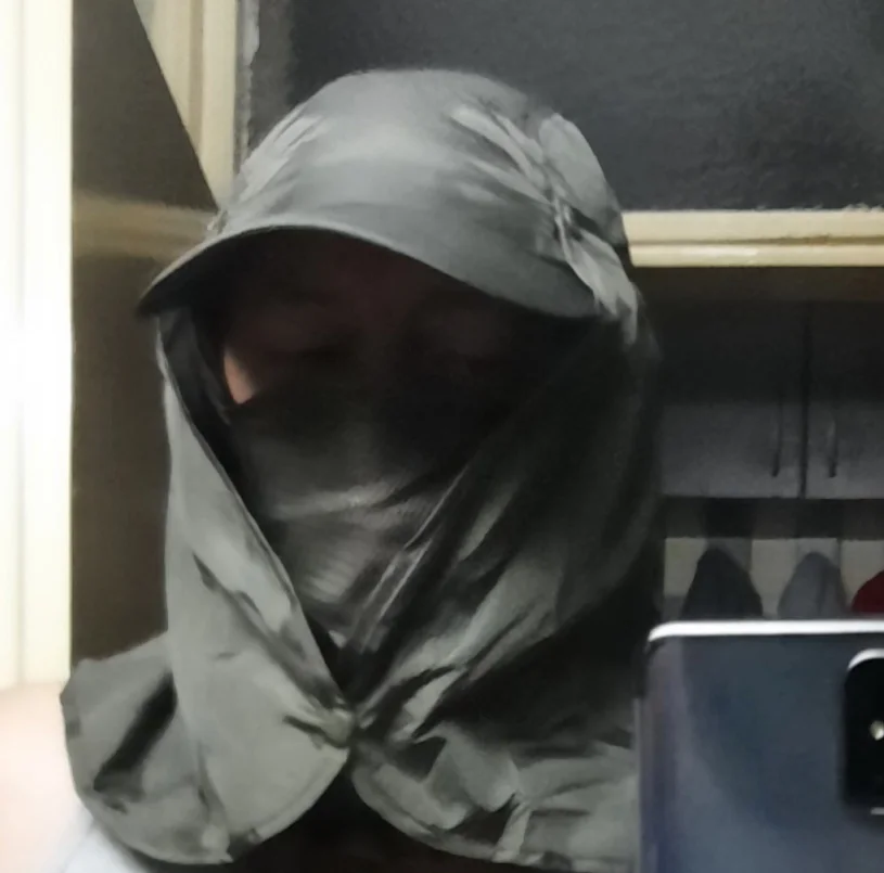 Очень классная, но только на небольшую голову. Жалко я бы мужу с удовольствием такую взяла. Тонкая плащевка, так что голове жарко не будет. Зато от клещей, комаров и мошкары защитит. Остаются видны только глаза и их можно закрыть очками.