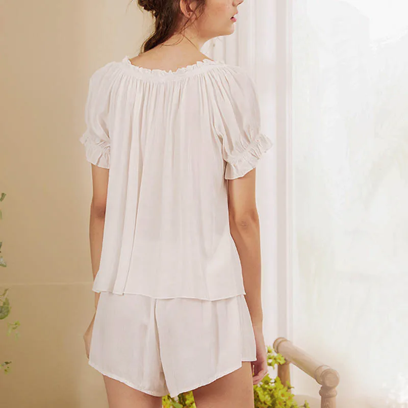Roseheart белый Для женщин сна Домашняя одежда для сна костюмы с вырезом лодочкой, пижамный комплект, одежда для сна ночная рубашка из искусственного шелка, хлопковый комплект из 2 предметов