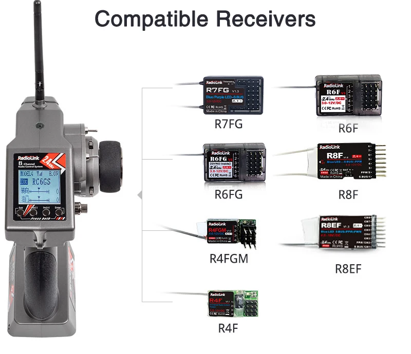 Совместимые приемники: Radiolink R7FG/R6FG/R6F/R4FGM/R4F/R8EF/R8F