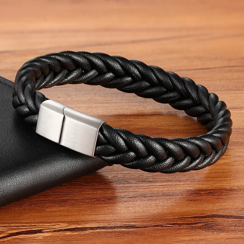 Браслет XQNI мужской с магнитной застежкой, классический кожаный Шарм, ручное вязание, из нержавеющей стали, разные цвета