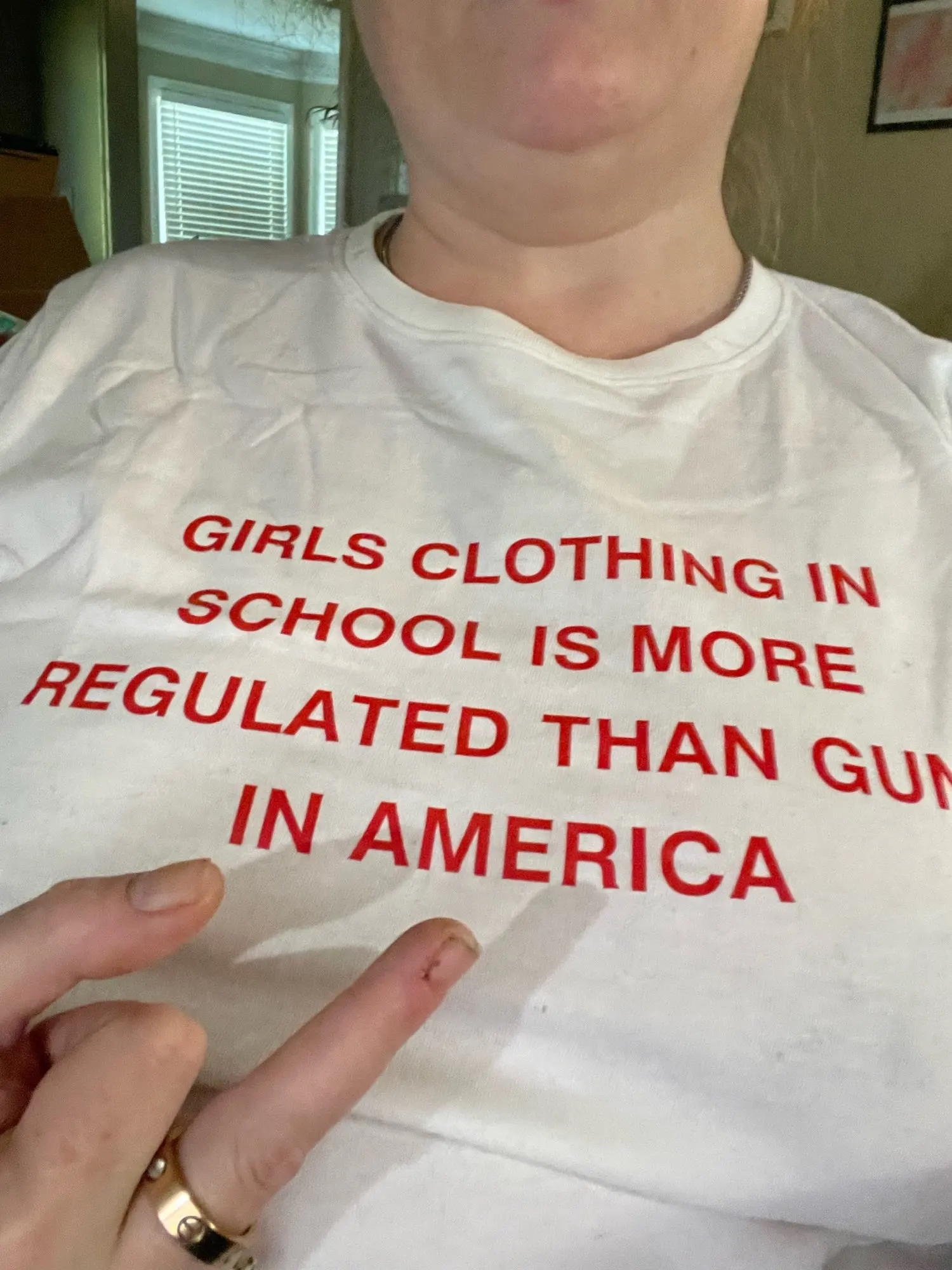 Футболка женская хлопковая с графическим принтом, одежда для девочек в школе, регулируется по сравнению с оружием в Америке