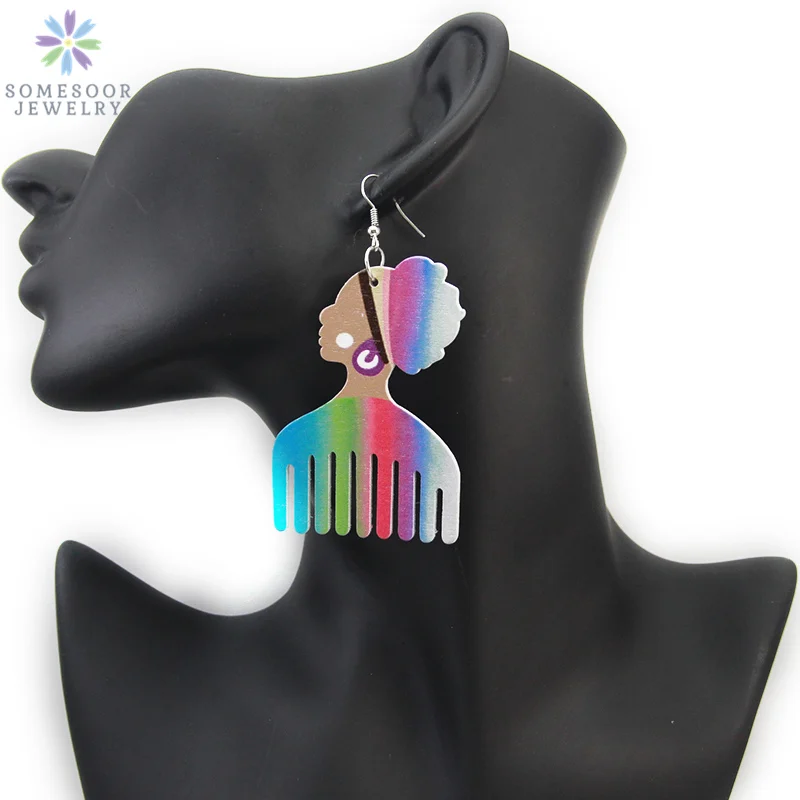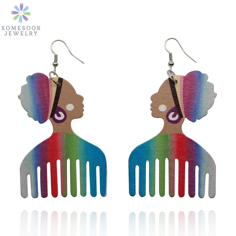 Серьги-капельки SOMESOOR, Радужный цвет, тюрбан в африканском стиле, расческа из дерева, Afrocentric, натуральные волосы, этнические, богемные украшения для женщин, подарки
