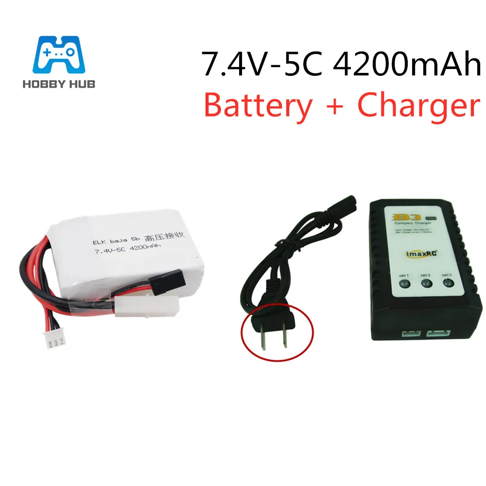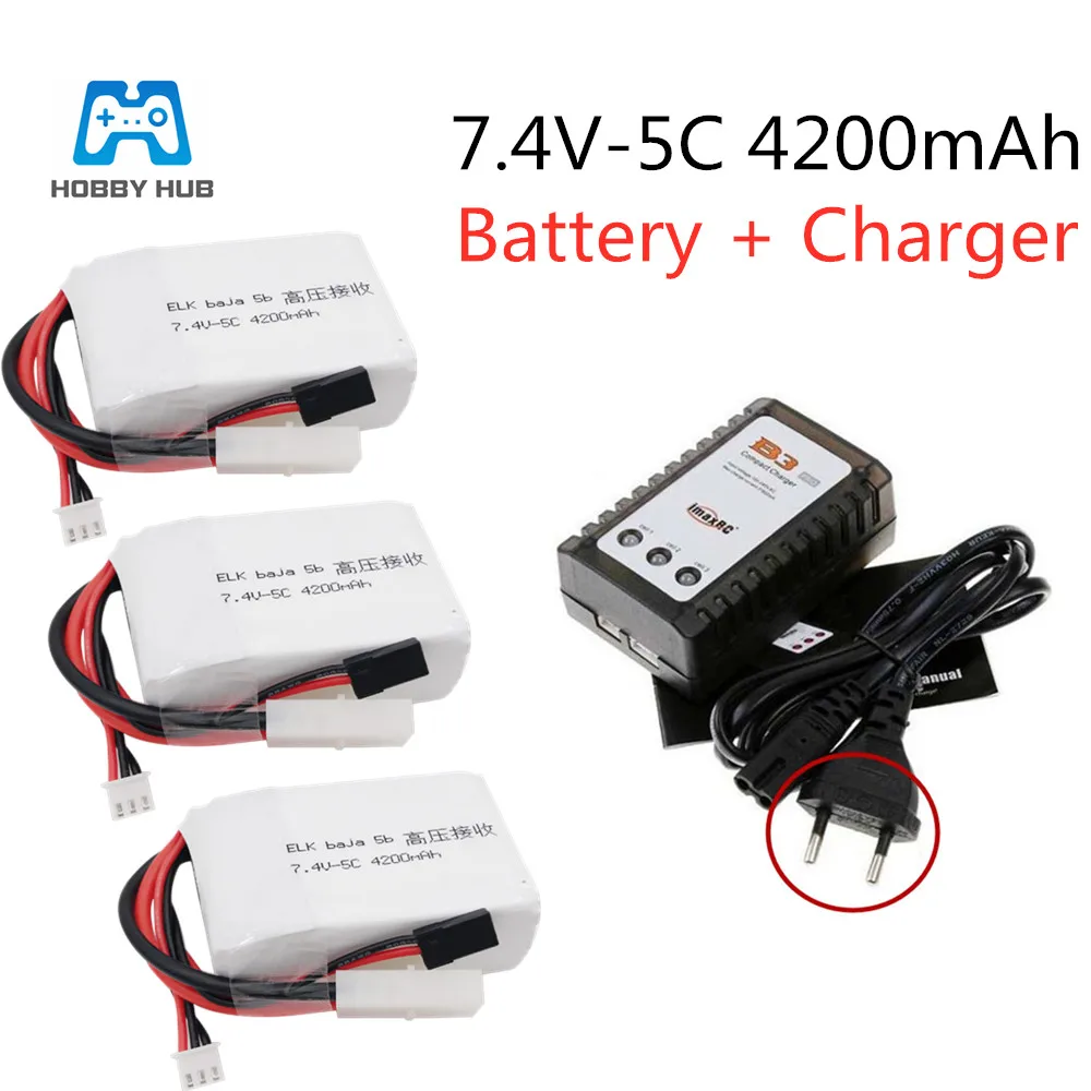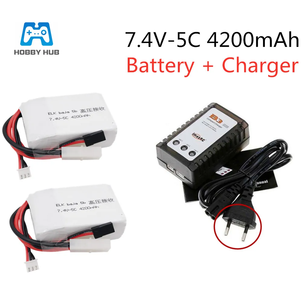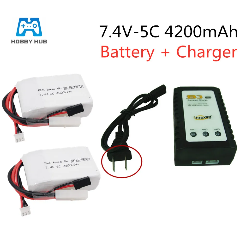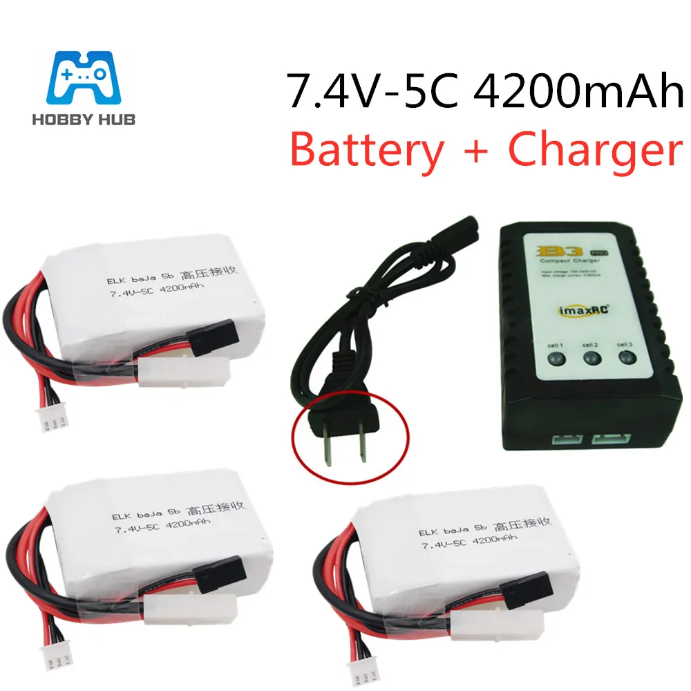 Hobby Hub 7,4 v-5C 4200mAh 2S lipo батарея для радиоуправляемого автомобиля квадрокоптера литий-полимерный Battey ELK racing baja 5b Высокое напряжение прием