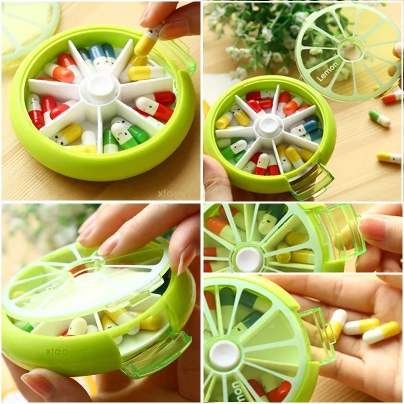 Портативный вращающийся круглый бокс для хранения таблеток, 7 бар, мини-контейнер для хранения лекарств, фруктов