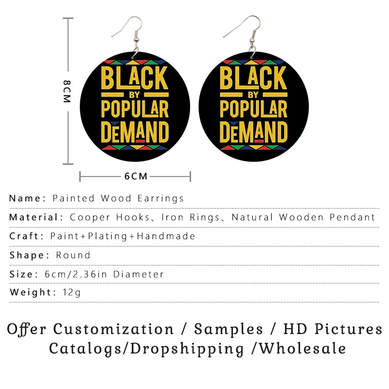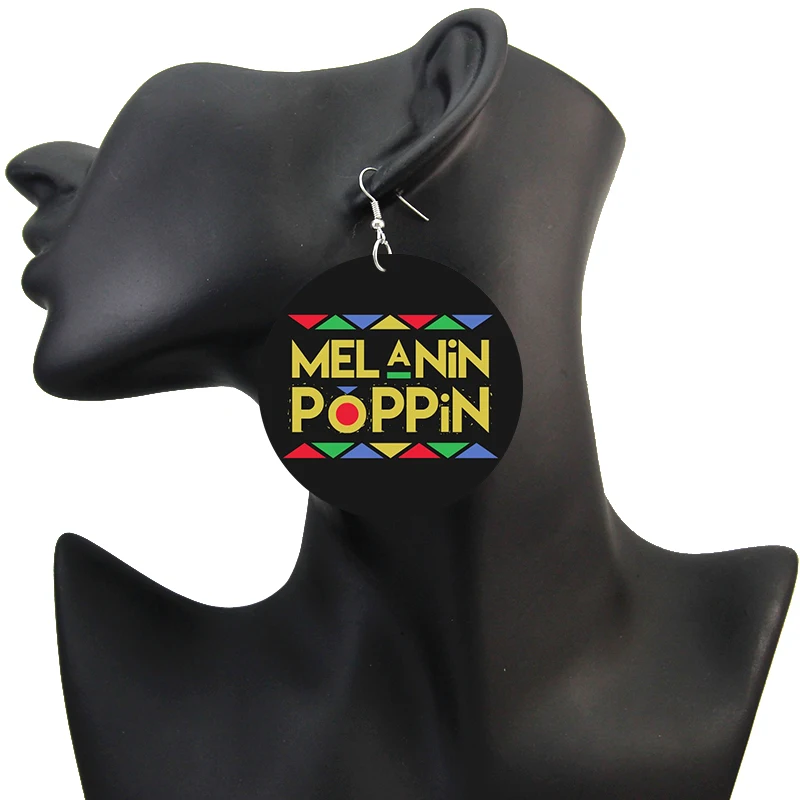SOMESOOR Модные женские серьги-капельки из натурального дерева с изображением черного живой материи, меланина, афро сила кукулона, лак