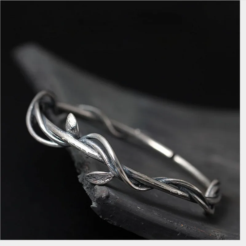 Uglyless 100% Настоящее 925 пробы серебро лозы браслеты для женщин ручной работы скрученные листья Открытый браслет из тайского серебра изящные ювелирные изделия