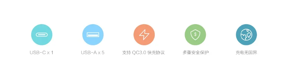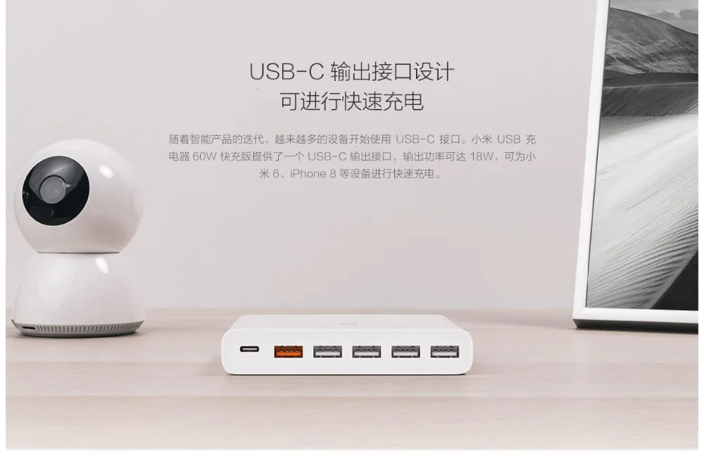 Оригинальное зарядное устройство Xiaomi USB-C 60W (всего), умный выход 1 Type-C, 5 USB-A, двойной QC 3,0, быстрая зарядка 18W x2 + 24W(5V = 2.4A MAX)