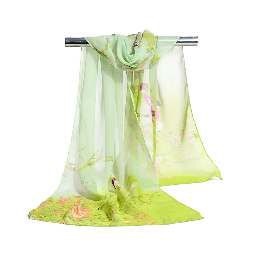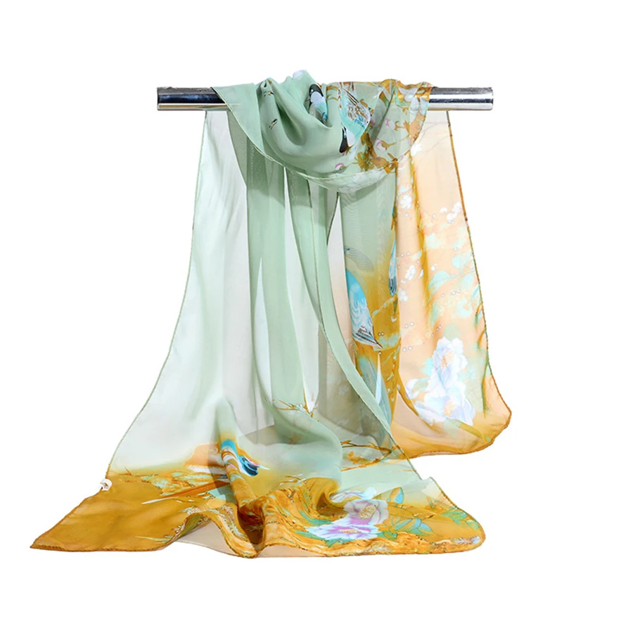 Женские шифоновые шарфы с принтом Magpie, весенне-летние длинные шали и накидки, оптовая продажа, 9 видов цветов