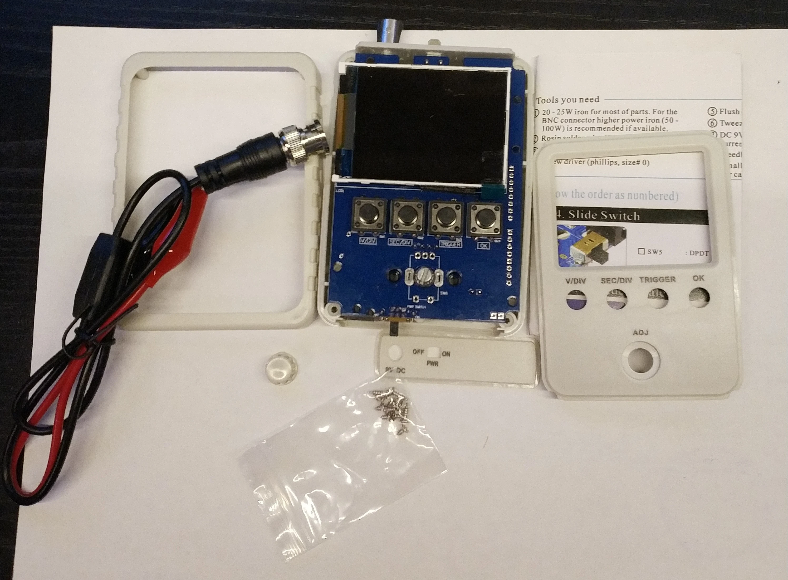 Item is not as described. Seller ships soldered and assembled device instead of kit. Device is working. Fast delivery. Шло меньше месяца. Осциллограф рабочий, но пришёл уже запаянный, в корпусе. Никакого DIY для сына, хотел, чтобы он SMD попаял, а тут такой облом :-(