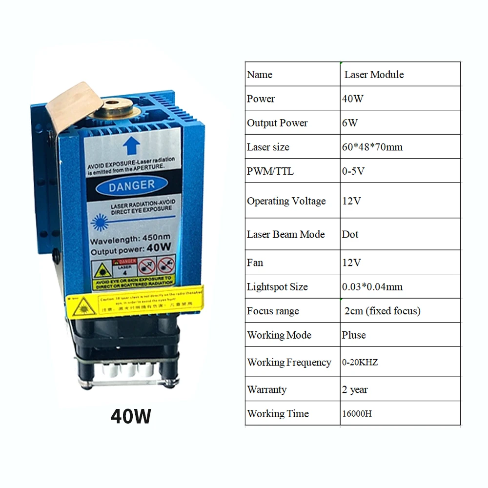 Лазерный модуль с ЧПУ 15 Вт30 Вт40 Вт, Синяя лазерная трубка с ШИМ-лазерным резаком для фрезерного станка с ЧПУ, резка и резка
