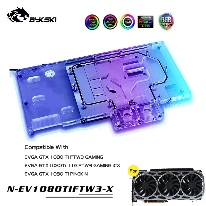 Bykski N-EV1080TIFTW3-X, водяной блок GPU для EVGA GTX 1080 Ti FTW3 GAMINGEVGA GTX 1080 Ti PINGKIN видеокарта, охладитель VGA