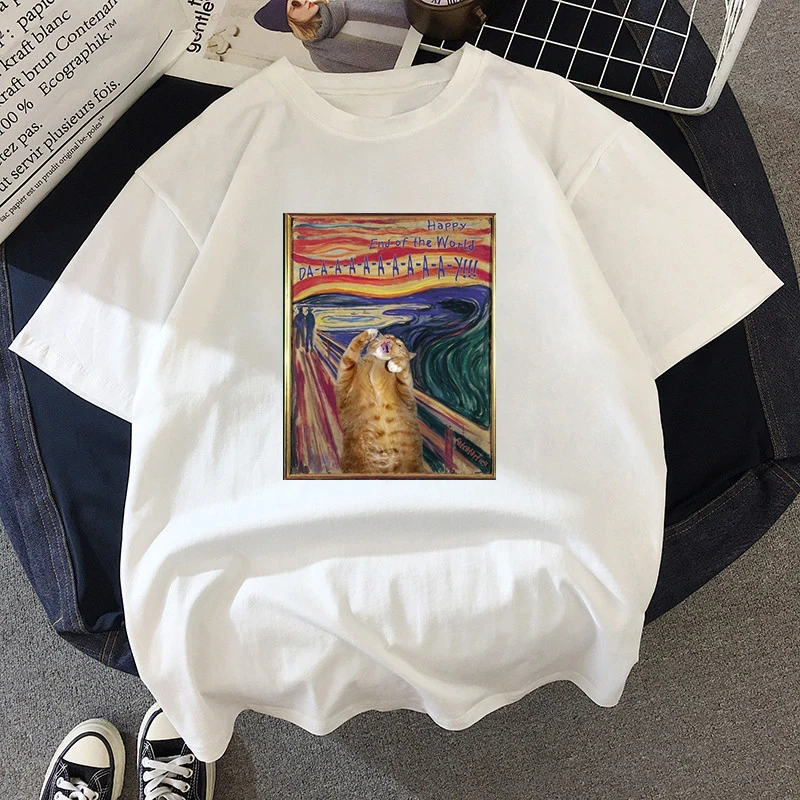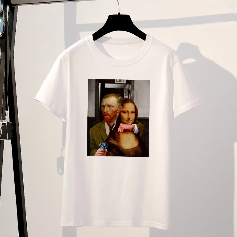 Футболка женская свободного покроя с принтом пародия Моны Лизы, модная смешная футболка в стиле Харадзюку, повседневная одежда, лето