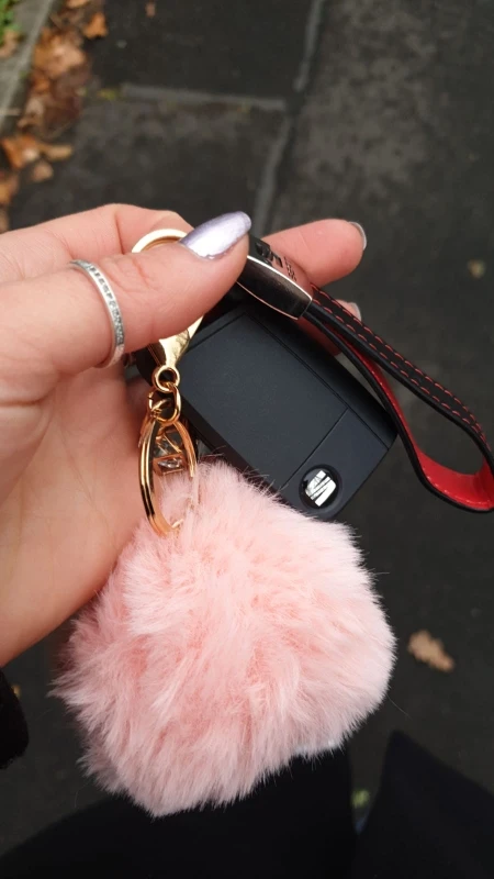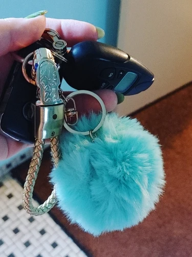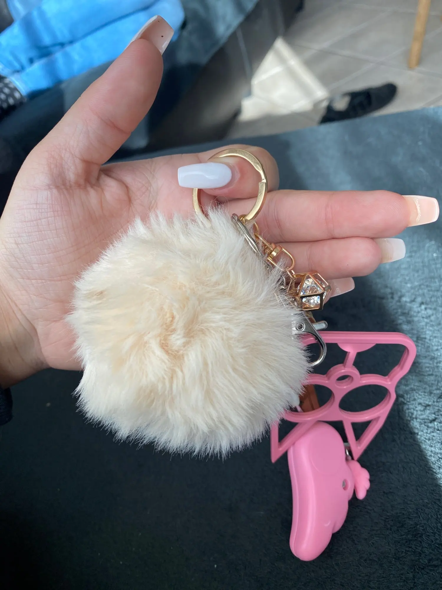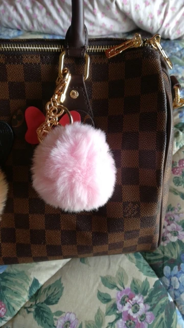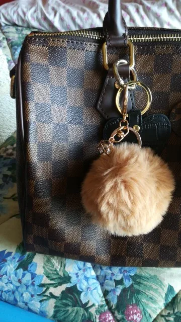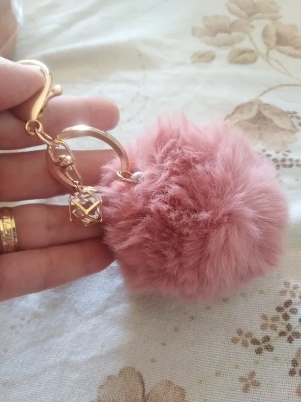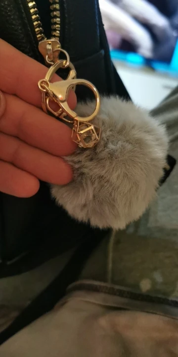 Я ношу очень мягкий меховой помпон, который включает в себя деталь кристалла, которая выглядит очень мило. Это точно такой же цвет, как и в рекламе по форме и цвету.