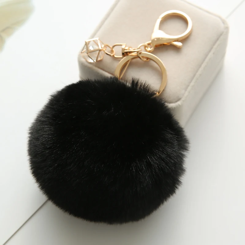 Брелок для ключей, женский, пушистый, из искусственного кроличьего меха, 23 Цвета, брелоки с помпонами