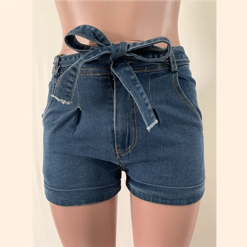 Джинсовые шорты с завязкой на талии, новый дизайн 2019, летние шорты с завышенной талией и пуговицами, простые повседневные джинсовые шорты размера плюс 5XL, женские горячие брюки