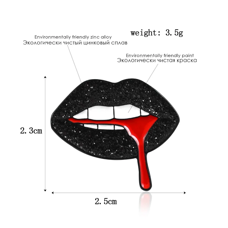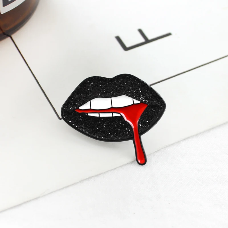 Блестящая брошь из красной крови с черными губами, креативный значо...