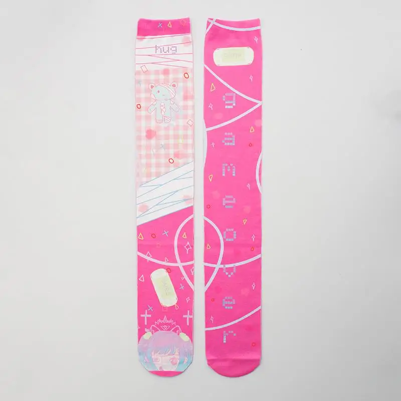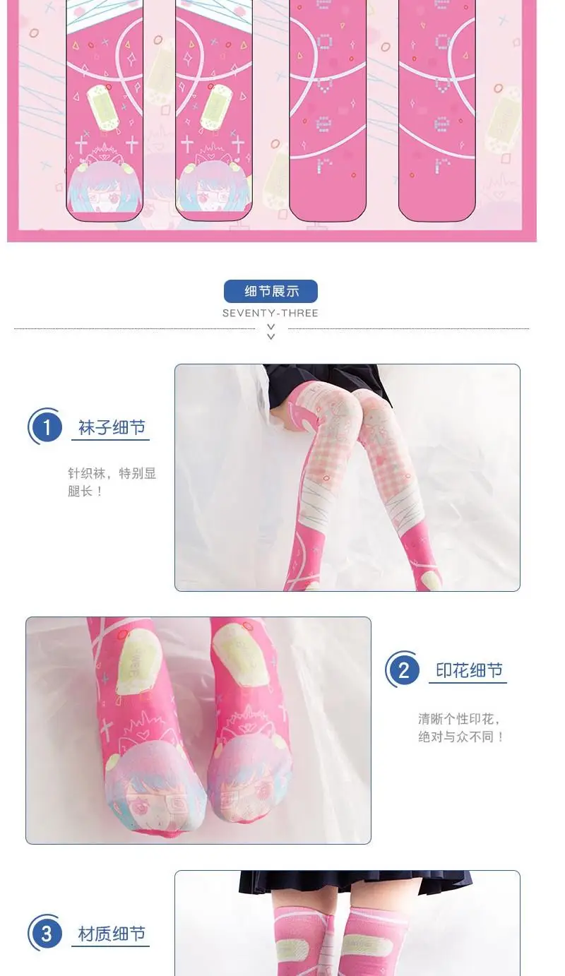 Чулки в японском стиле с милым мультяшным рисунком для девочек, бархатные колготки выше колена, чулки для косплея 5SW05