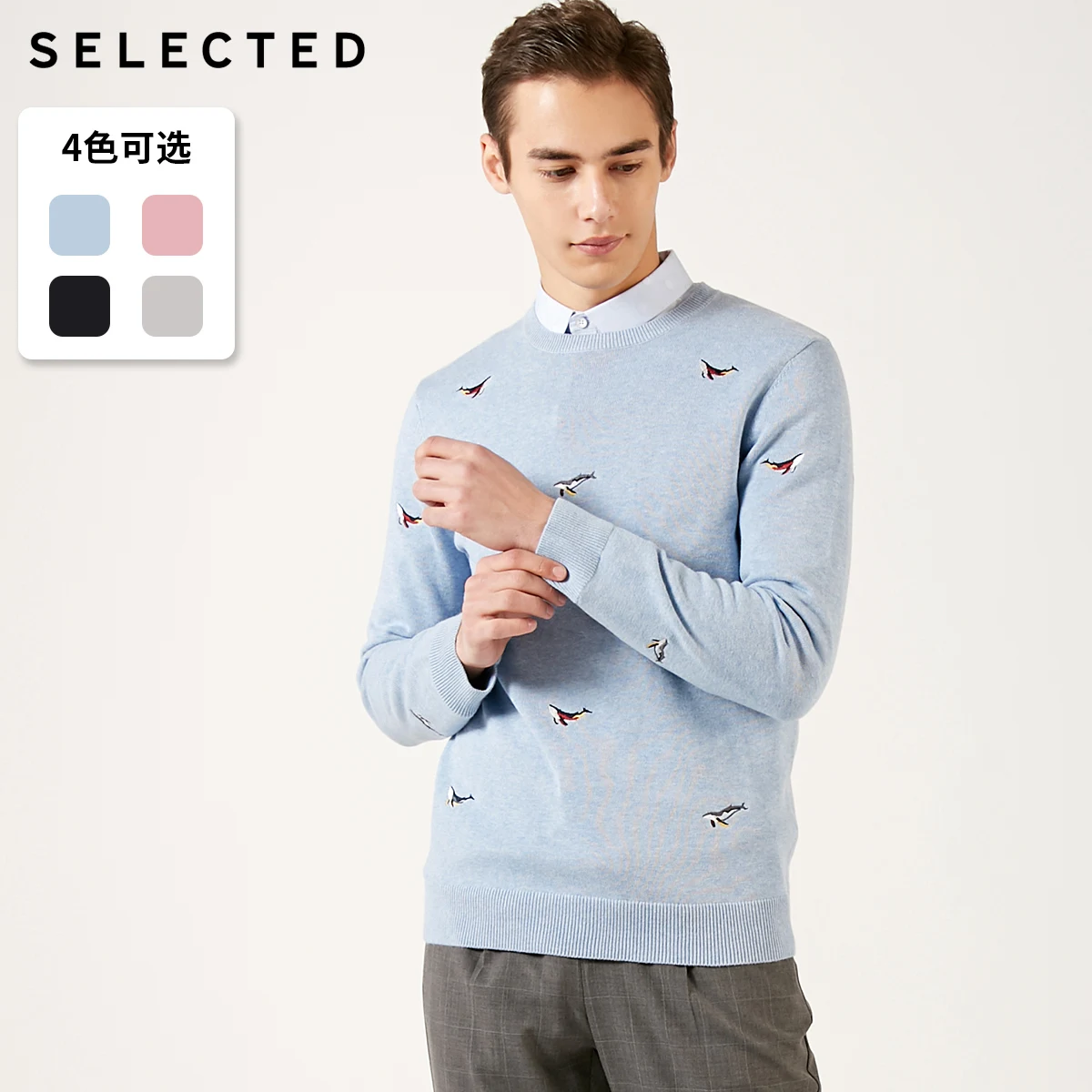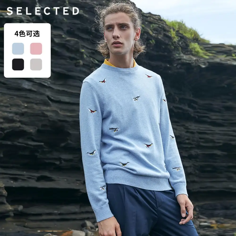 Мужские пуловеры из 100% хлопка с вышивкой животных, свитер, Новая повседневная трикотажная одежда C 419124539