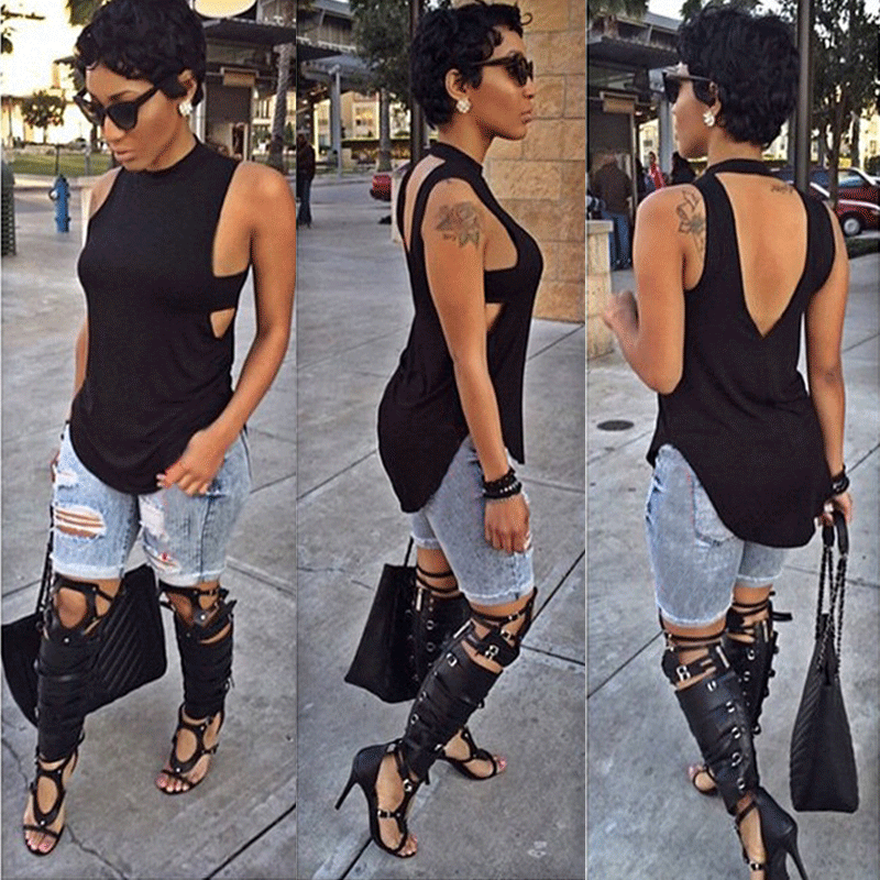 Модный женский летний Свободный Топ без рукавов, повседневные майки, футболка, женские повседневные майки с открытой спиной и вырезами