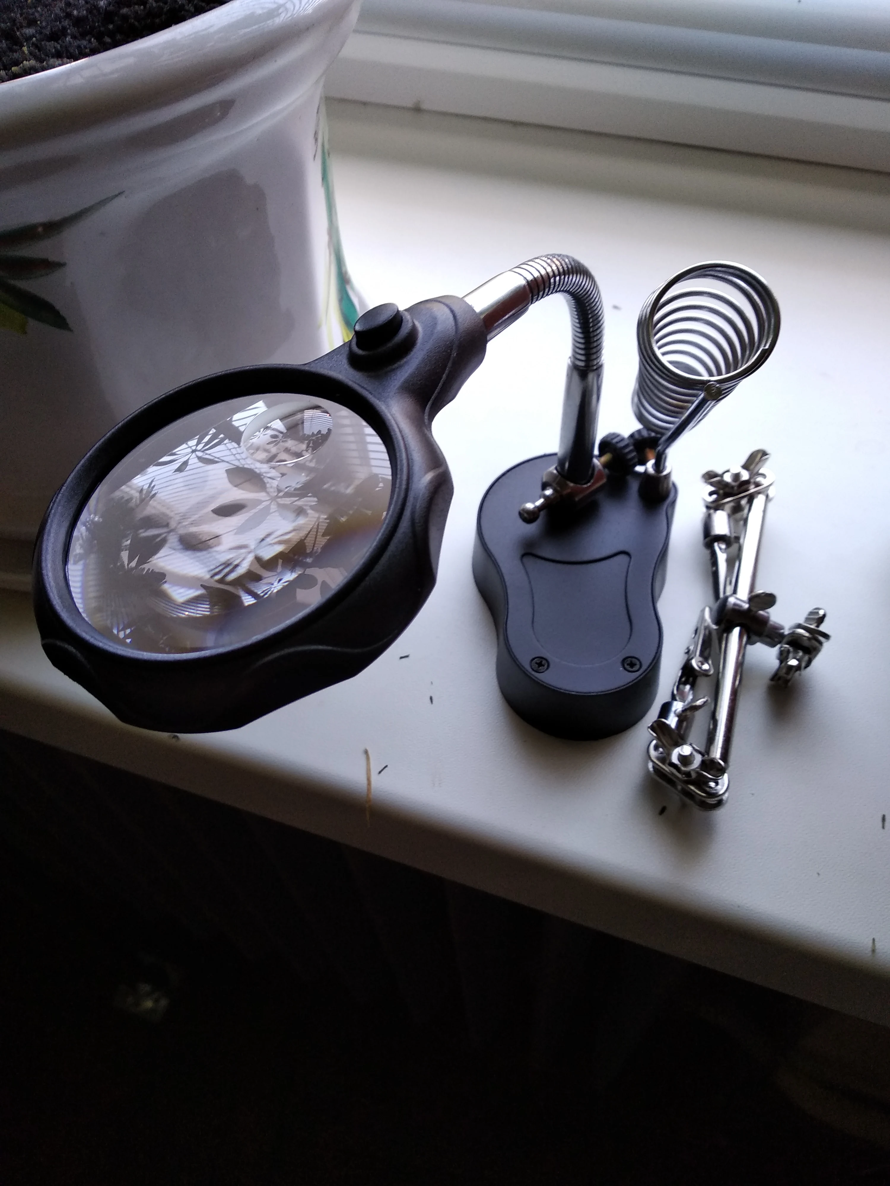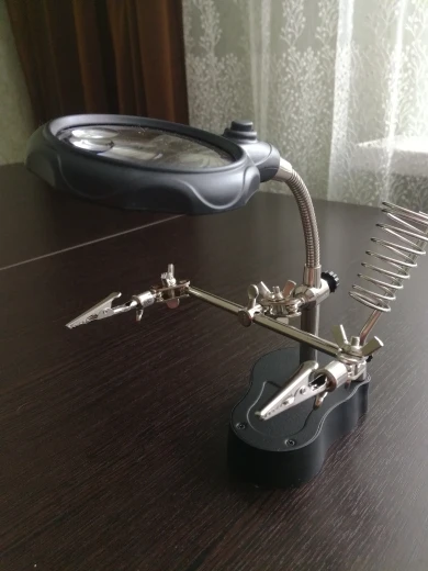 Приїхав мені цей штатив для пайки.... пакування погане: коробочка з товаром пом‘ята, але це не головне (думаю пошта постаралась). На лінзі просто з коробки царапина десь 1см довжиною, сам корпус підставки поцарапаний, таке враження що ним футбол грали, не критично, але неприємно, особливо якщо згадати ціну штатива в 10$ разом з доставкою. Раз в пів року щось припаяти згодиться. П.С. в комплект батарейки не йдуть, тож докупляйте самі)