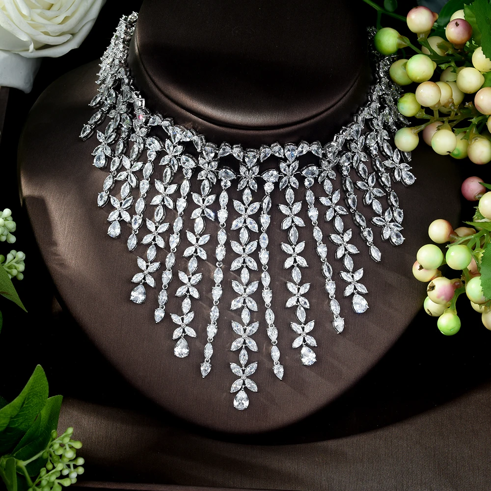 HIBRIDE Роскошный прозрачный кристалл циркония серьги и ожерелье на...