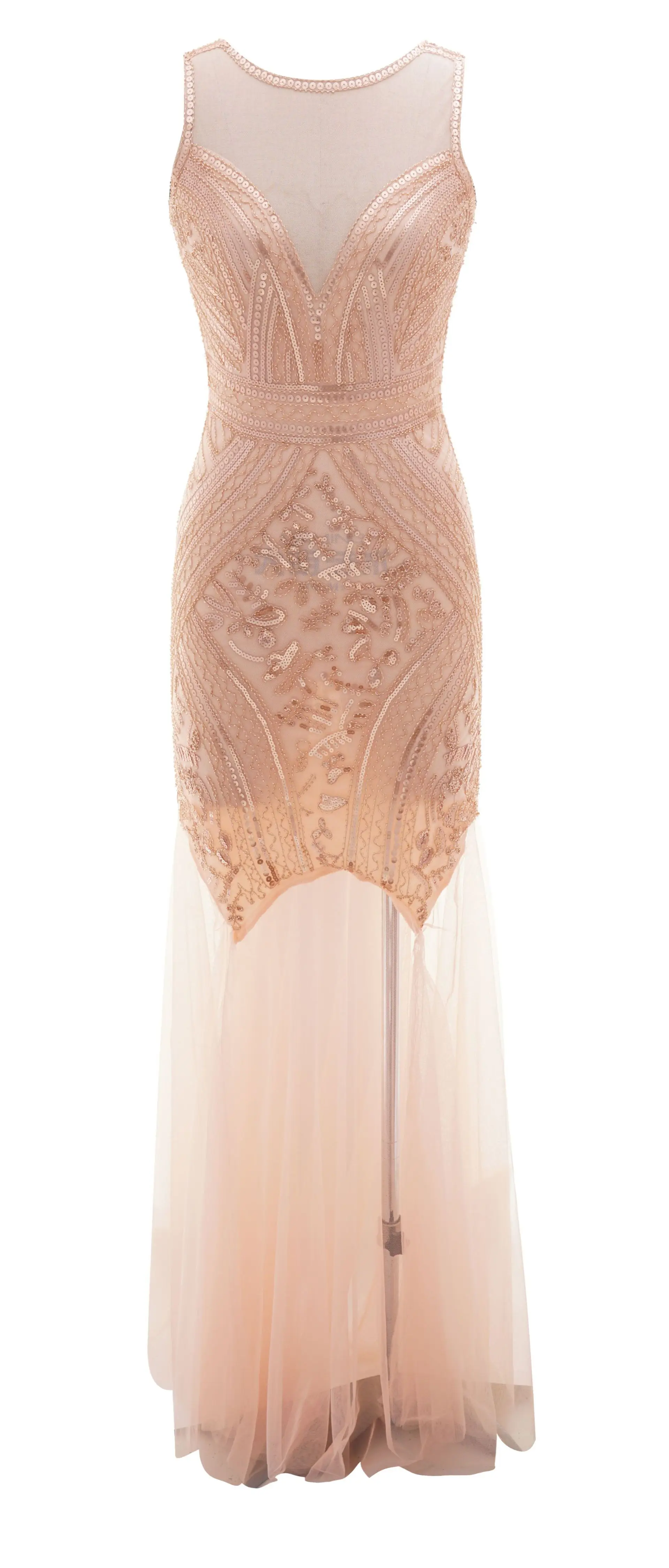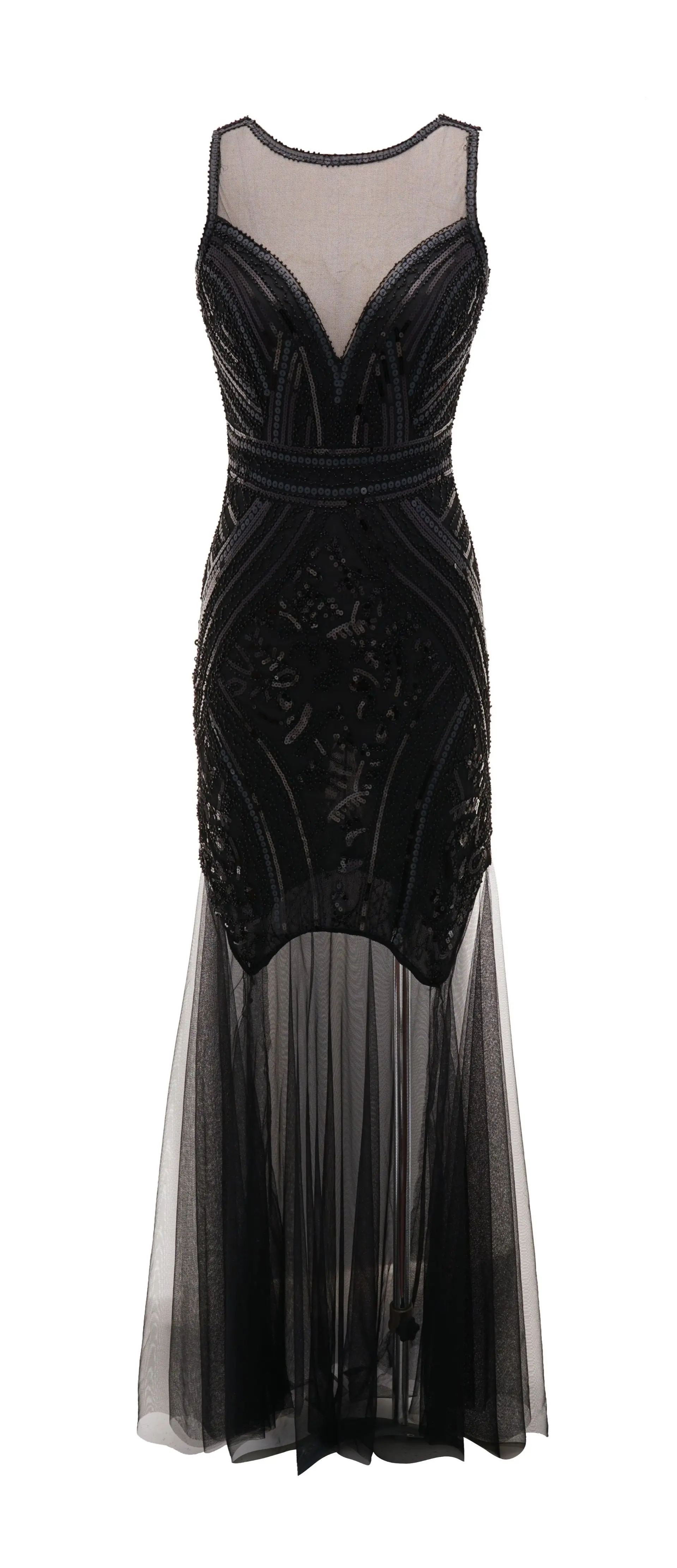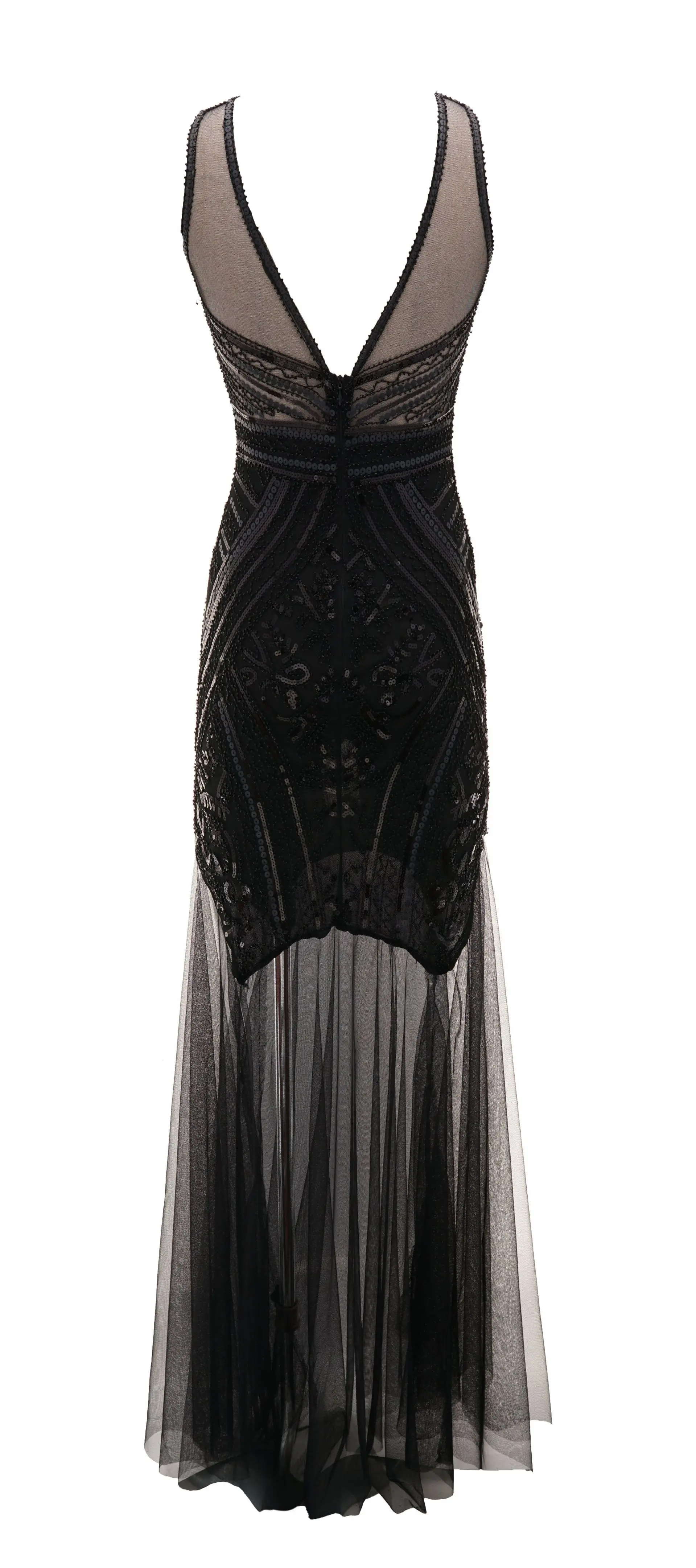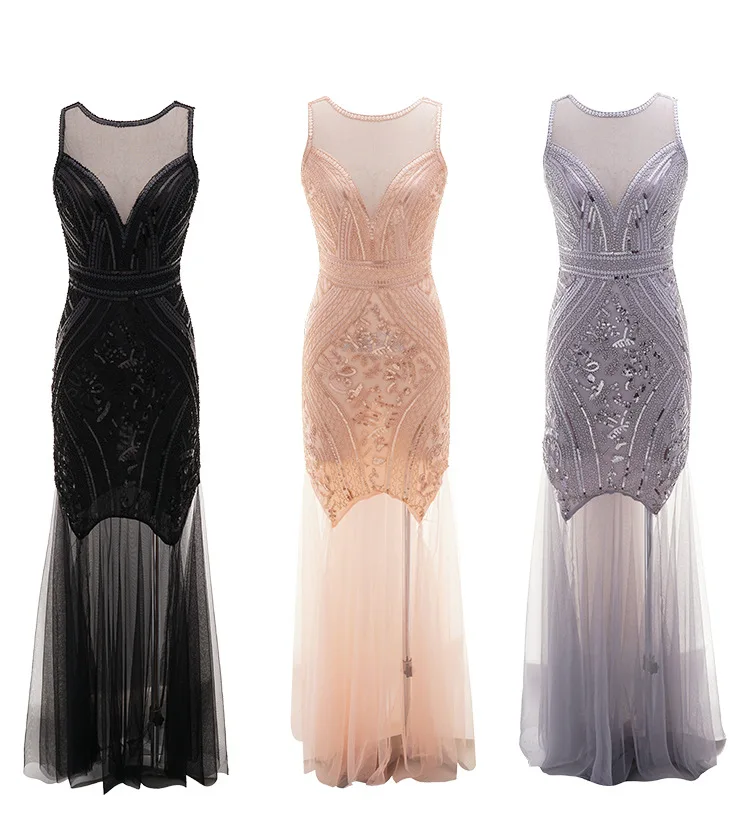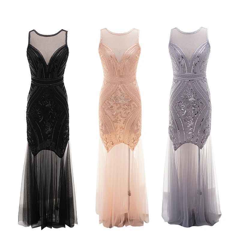 Женское винтажное платье-макси в стиле Грейт-Гэтсби, с V-образным вырезом, Сетчатое свадебное платье для вечеринки и выпускного вечера, 1920