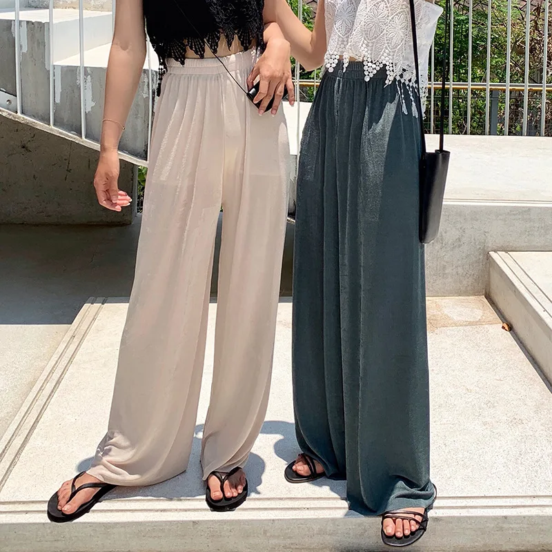 Женские шелковые брюки Daeyard, летние, тонкие, широкие, свободные, с высокой талией, большого размера