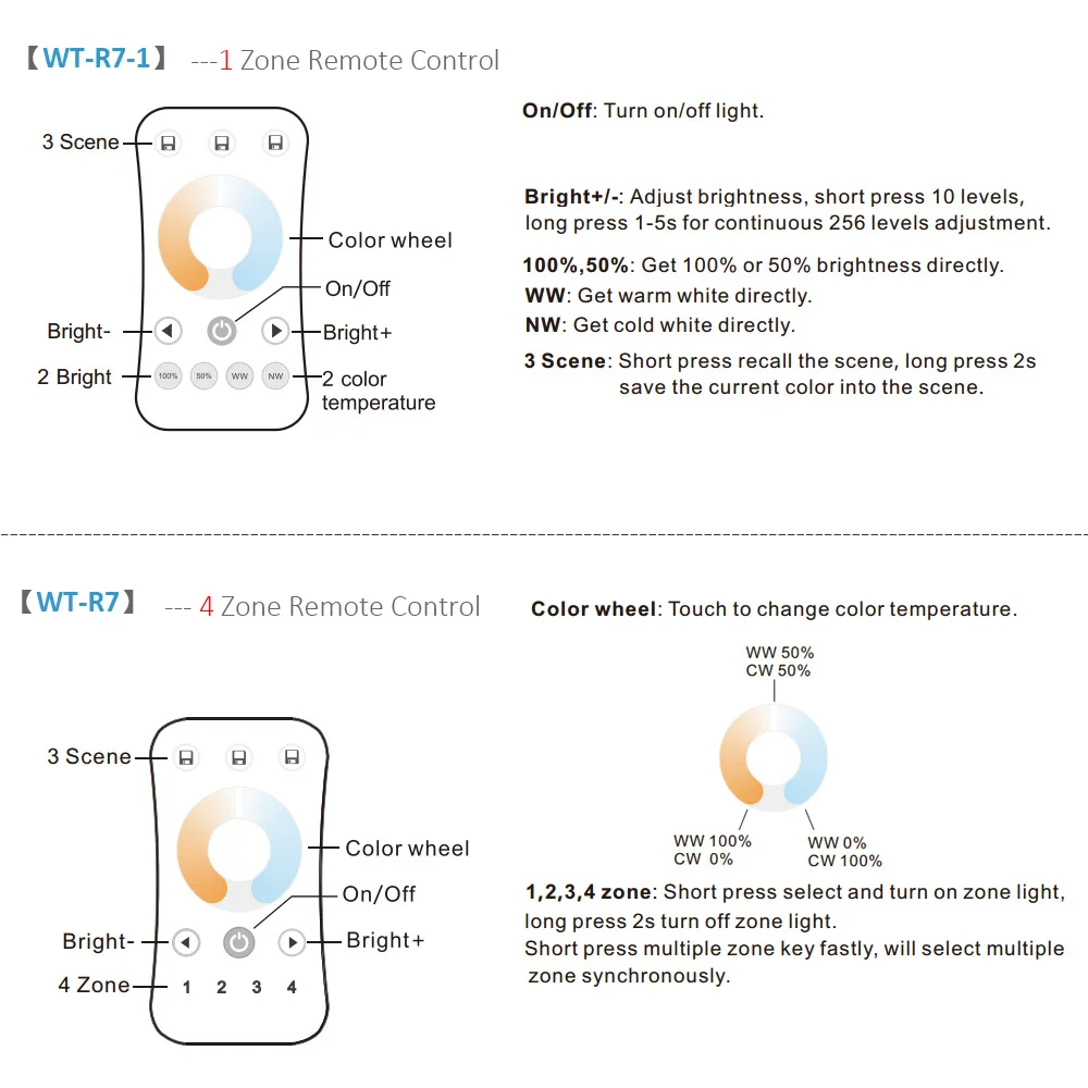 Регулятор яркости для светодиодных лент CCT, беспроводной Радиоконтроллер для одноцветных LED лент CT, 2,4G, дистанционное управление, 2 канала, WW, CW, 12 В, 24 В, 36 В, V2-L