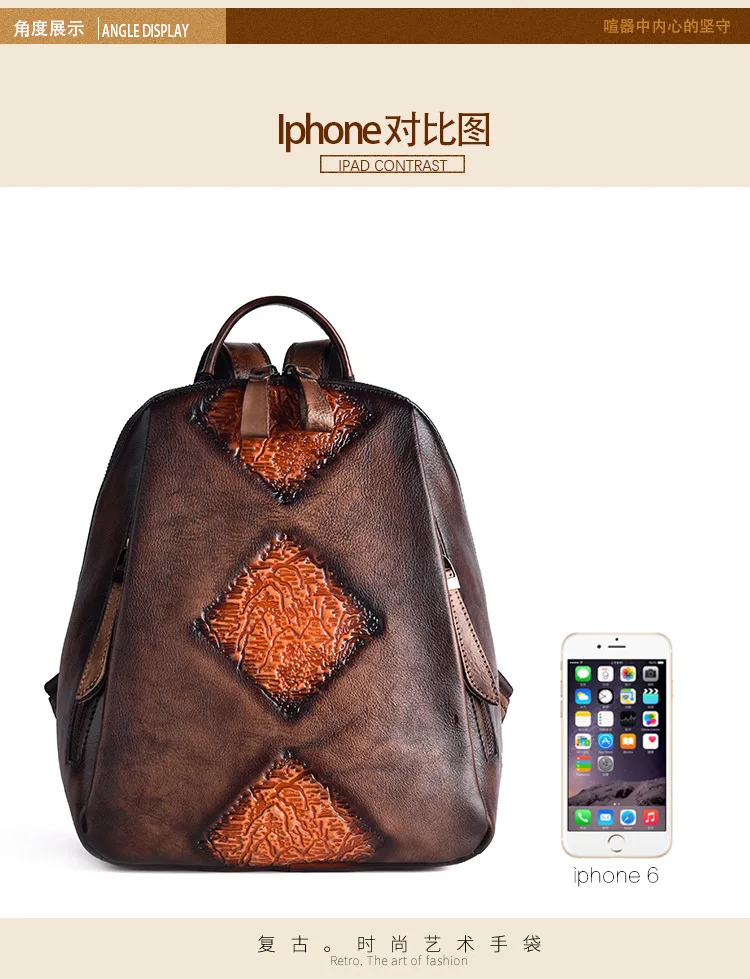 Женский рюкзак из натуральной кожи, винтажный рюкзак с тиснением