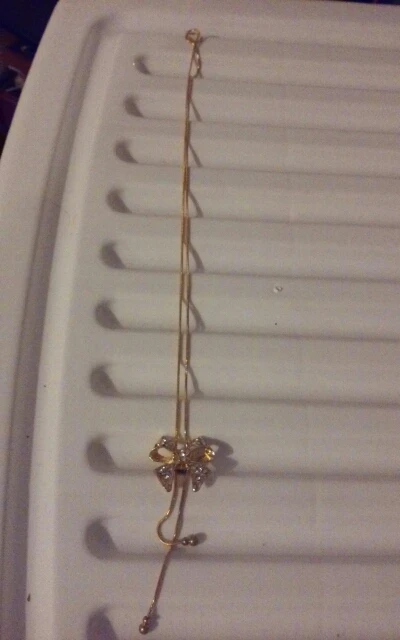 На фото выглядит крупно, а на самом деле очень маленькая цепочка и бантик