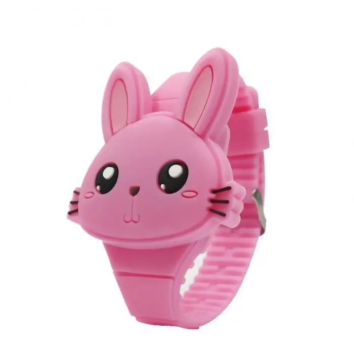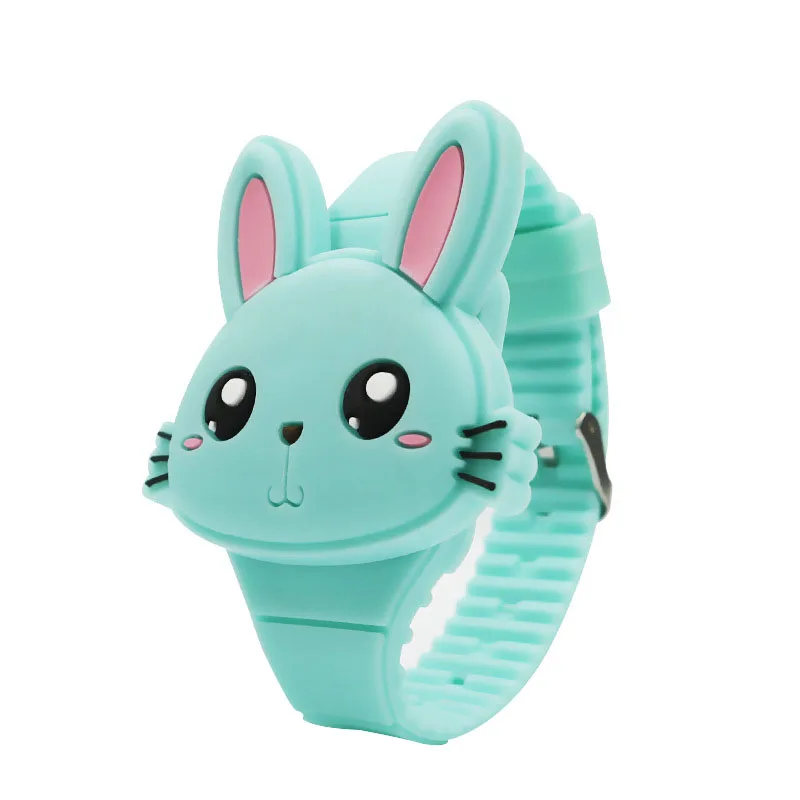 Детские электронные часы со светодиодный подсветкой, 1 шт., силиконовый ремешок, чехол-книжка с мультяшным Кроликом, наручные часы, прекрасный подарок SMA66