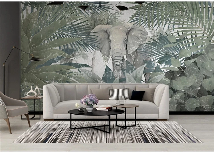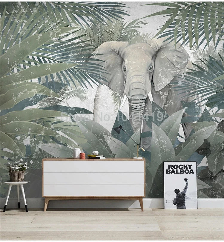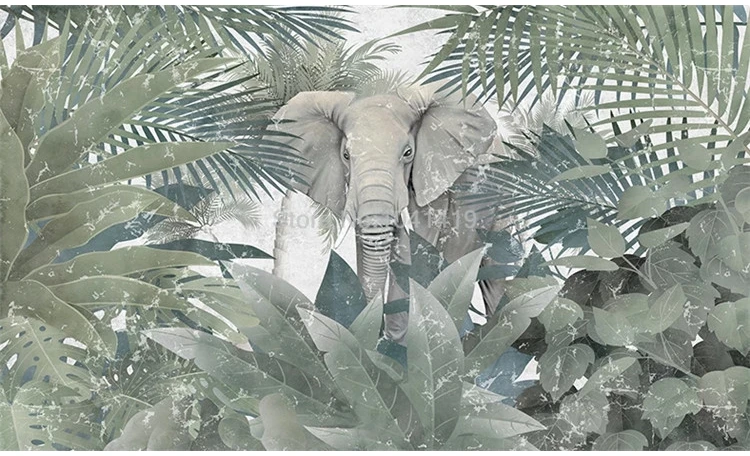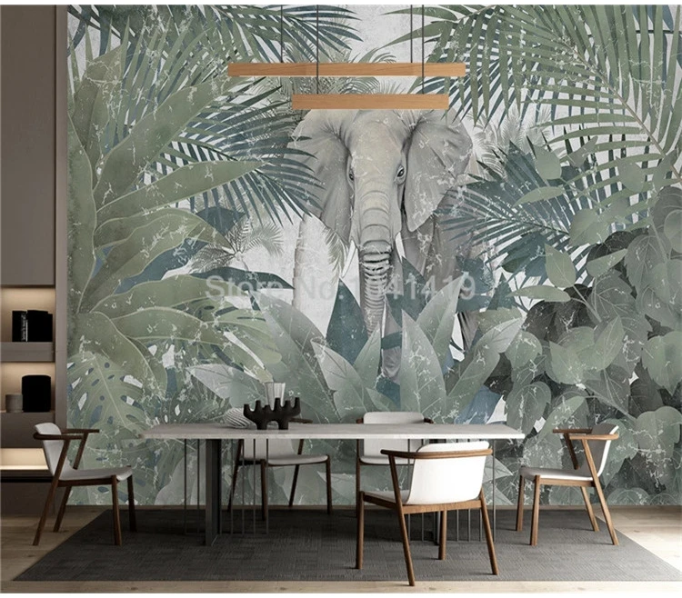 Обои на заказ, скандинавские тропические растения, дерево, животное, слон, пейзаж, искусство, настенная живопись, столовая, гостиная, 3D наклейка