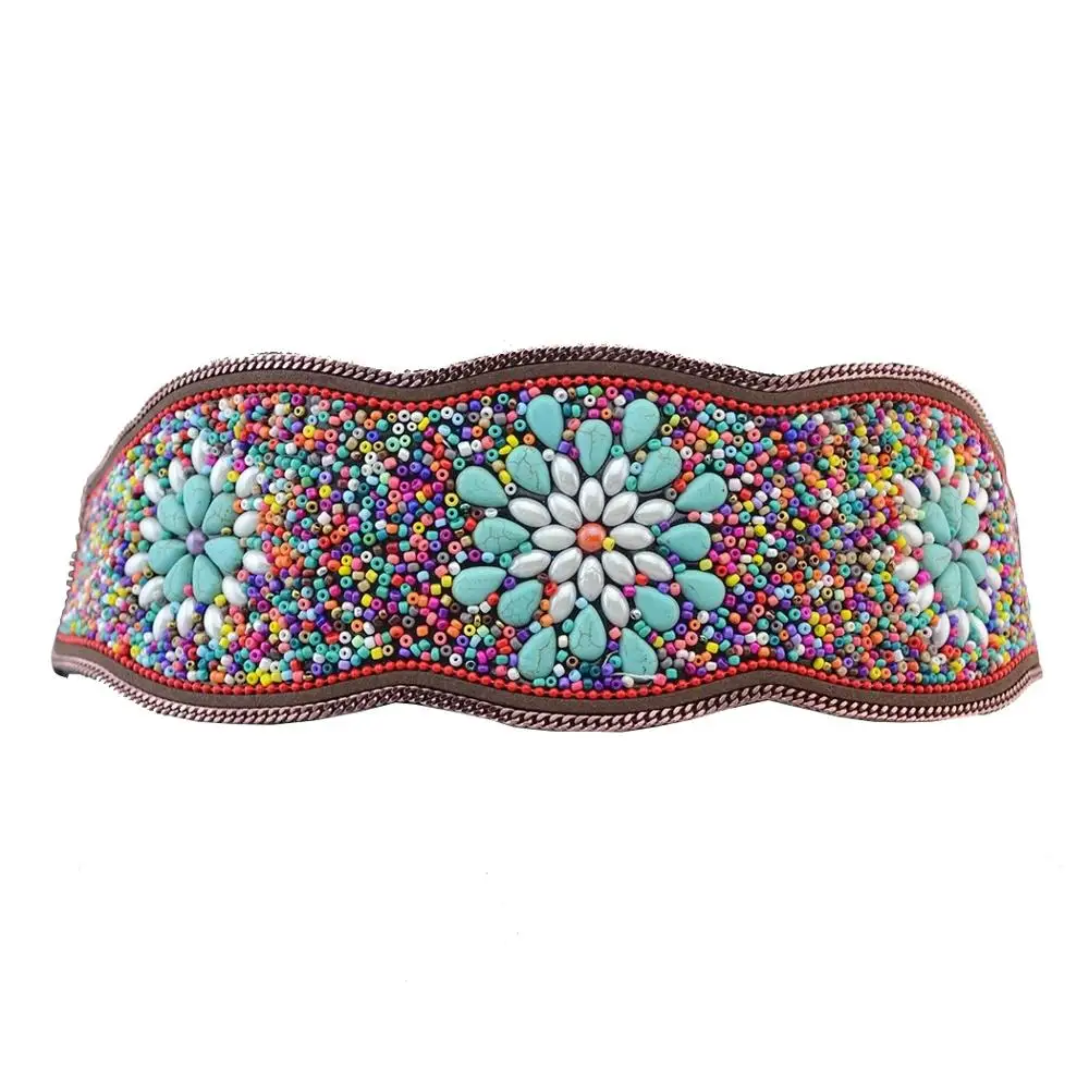 Богемный ретро этнический цветок с бусинами эластичное стрейч регулируемое платье ракушка Пояс Талия танцевальный живот цепочка тело ювелирные изделия