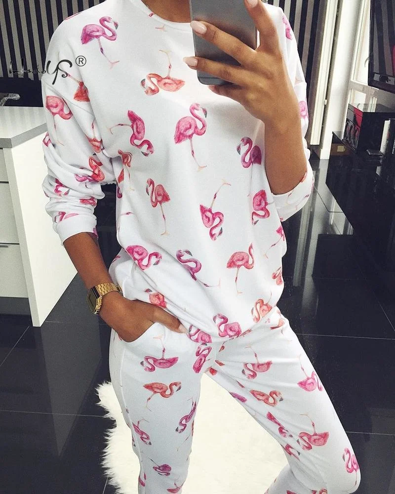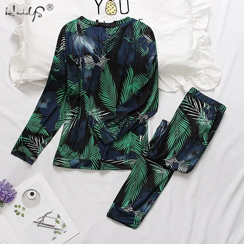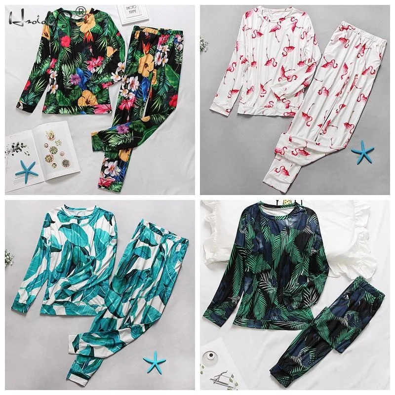 Осенне-зимняя Пижама с цветочным рисунком, Женская свободная мягкая пижама с длинным рукавом и круглым вырезом, женская одежда для сна, Женская домашняя одежда