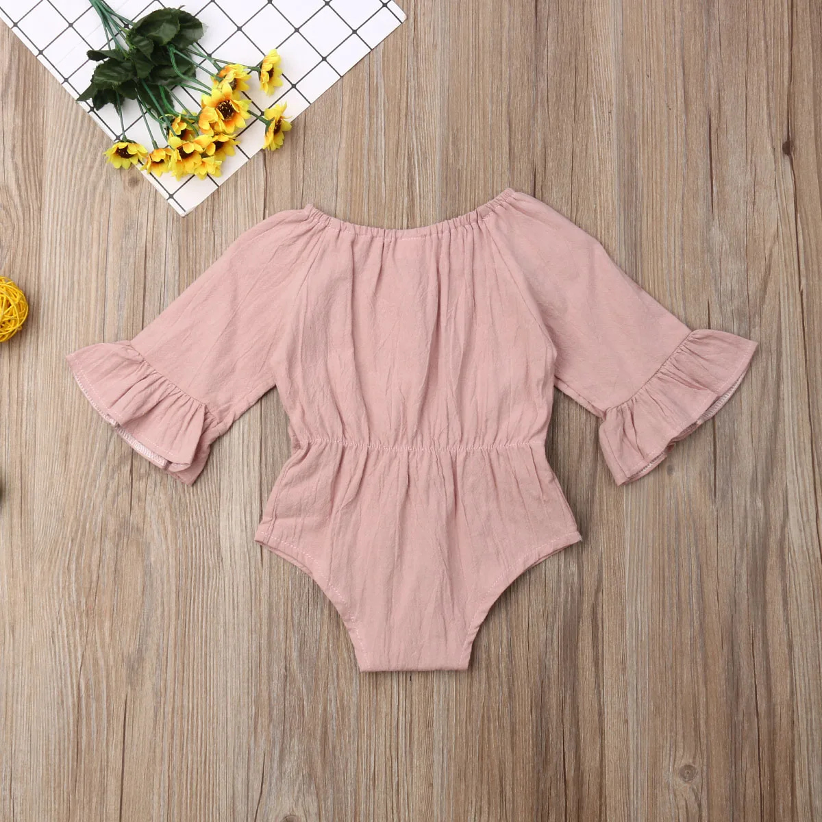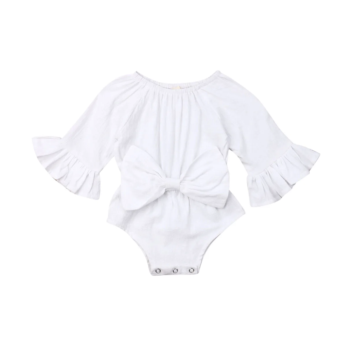 Комбинезон для девочек 0-24 месяцев, Летний комбинезон с длинным рукавом и бантом
