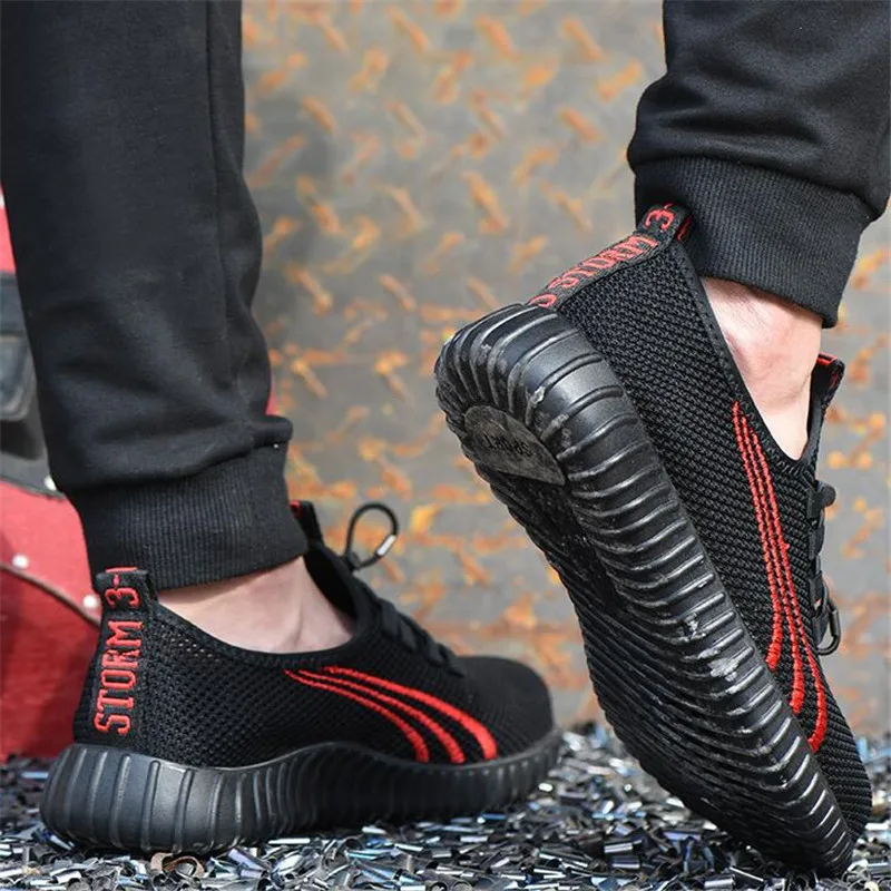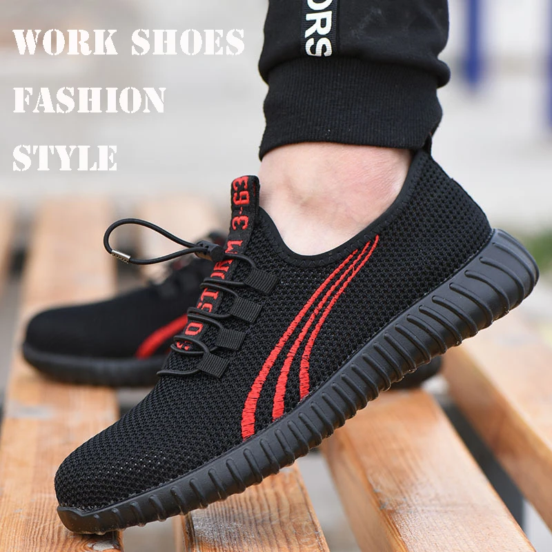 Защитная обувь для мужчин со стальным носком; Безопасная обувь для тренировок; Светильник для тяжелой работы; Устойчивые к проколу рабочие кроссовки; Мягкий дышащий черный светильник