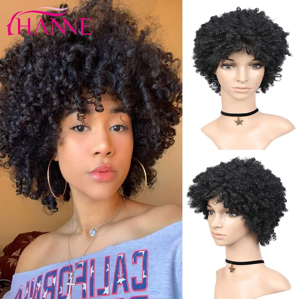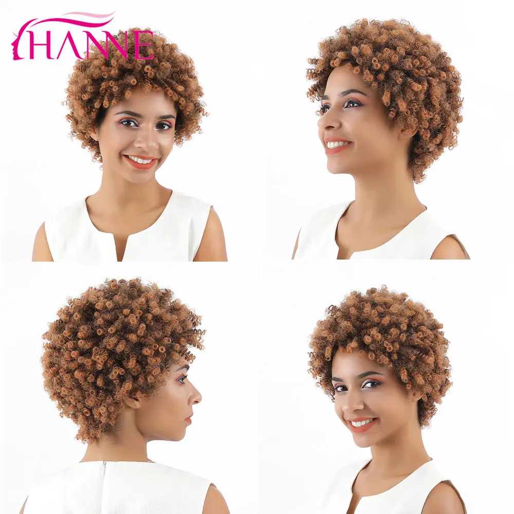Hanne короткий коричневый натуральный парик курчавые вьющиеся парики синтетический парик для чернокожих женщин Косплей африканские прически высокотемпературные парики