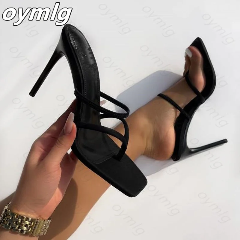 Летние женские сандалии с квадратным носком; Женские туфли без задника на каблуке; Пикантные босоножки на высоком тонком каблуке; Шлепанцы; Женская модная обувь; 2020