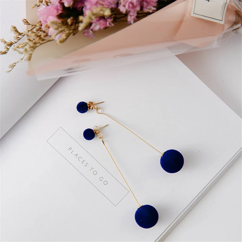 Милые простые длинные темпераментные серьги с плюшевым шариком для женщин, модные круглые серьги-гвоздики в Корейском стиле, оптовая продажа