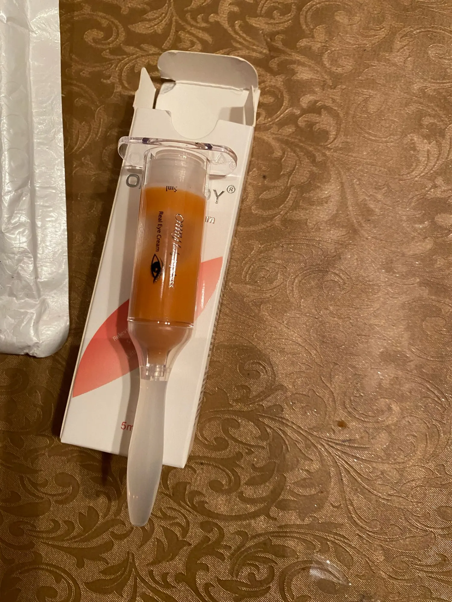 После очистки и основного ухода за кожей Положите крем для глаз в соответствии с использованием, что мы показывали в видео подождите, пока ваши мешки для глаз уменьшены (2-3mins), а затем используйте сухое бумажное полотенце аккуратно Вытрите часть пасты, затем нанесите макияж, если все еще почувствуете, что кожа сухая, смешайте с одной каплей сыворотки, Чтобы разбавить смесь перед нанесением