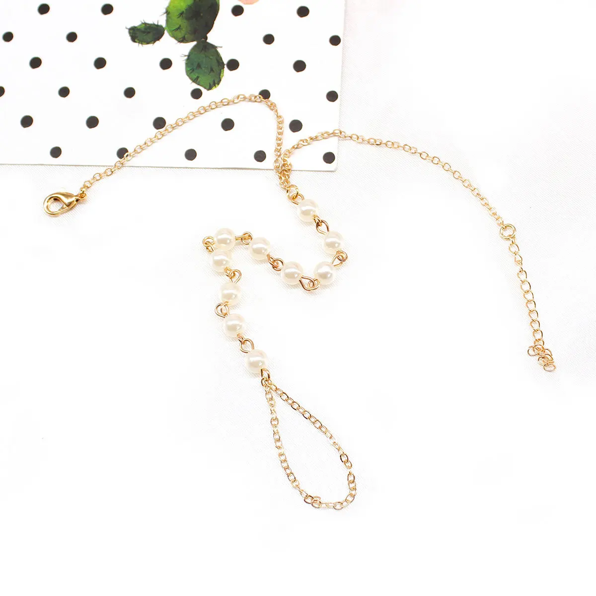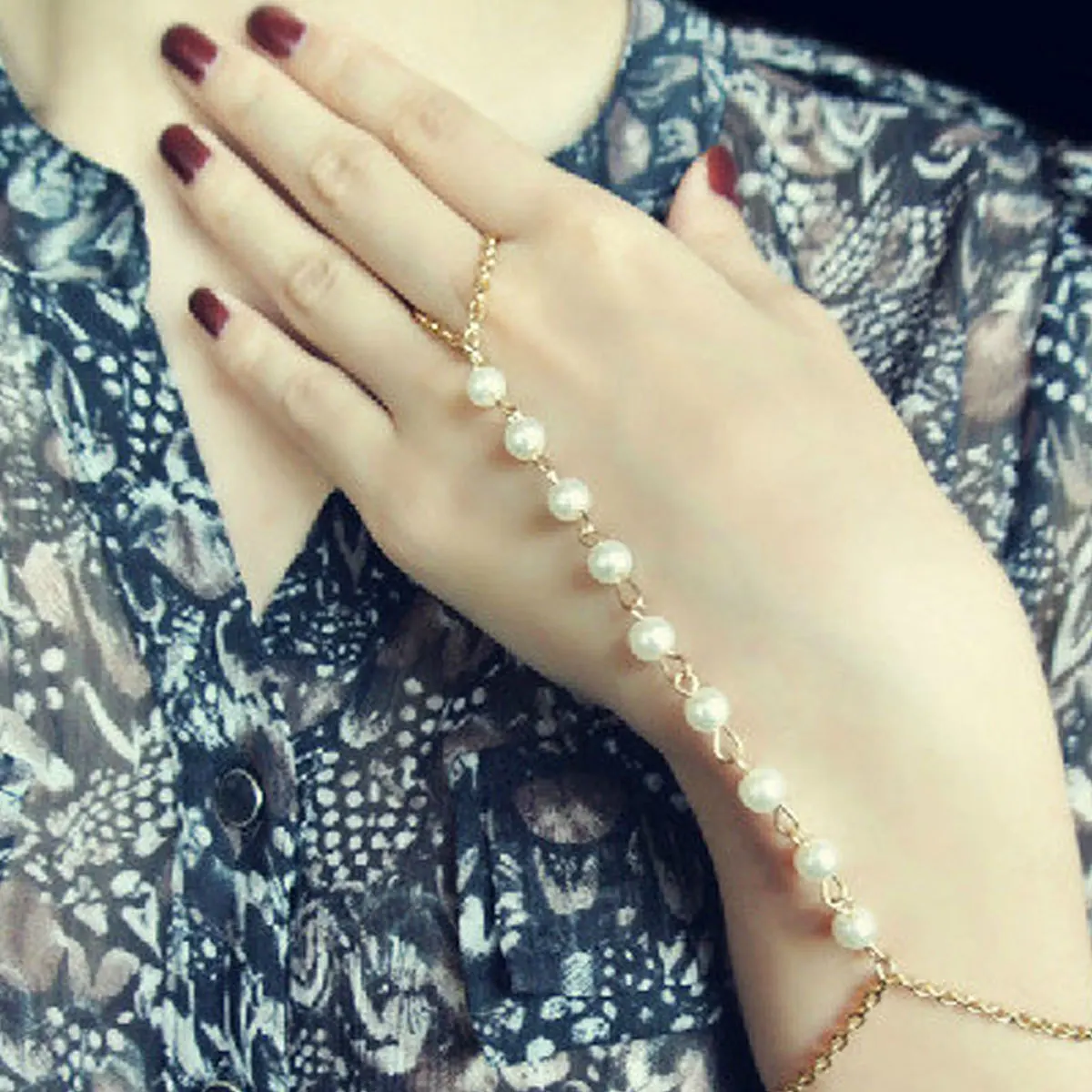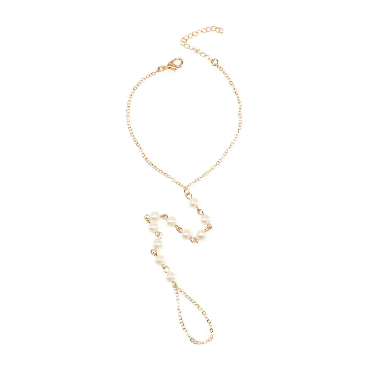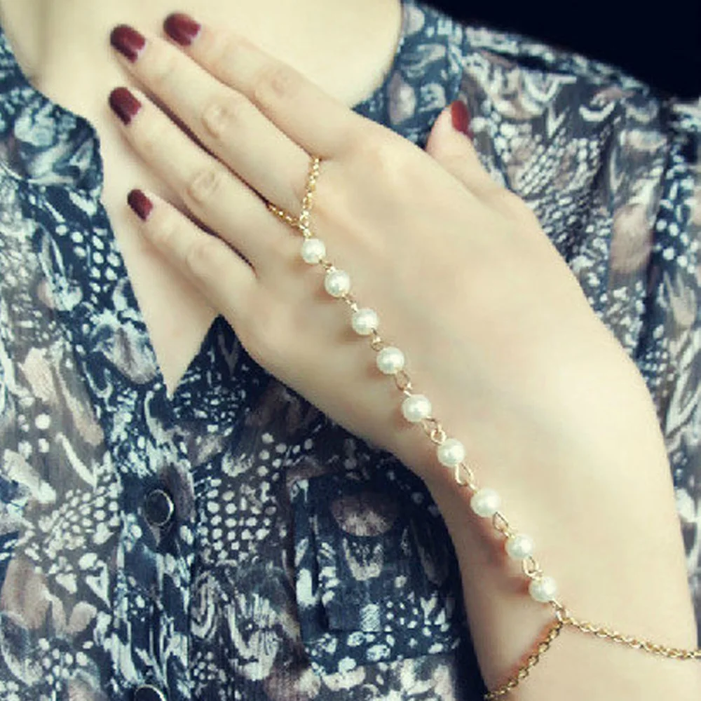 Модный жемчужный Золотой браслет ручной работы с длинной рабыней, браслет на палец, аксессуары для рук для женщин L041
