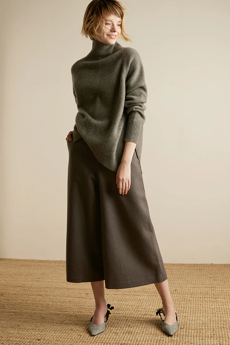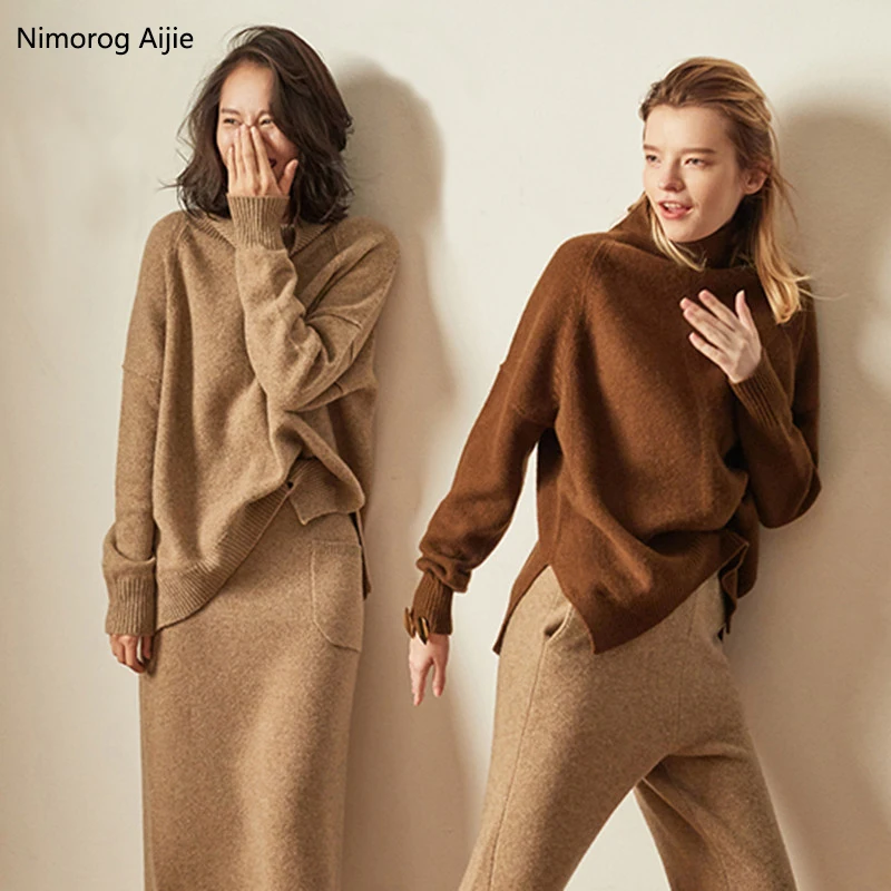 Осенне-зимний свитер, Женский кашемировый свитер с высоким воротником, свободный женский свитер, вязаный пуловер, свитера, Яркие топы, Новинка