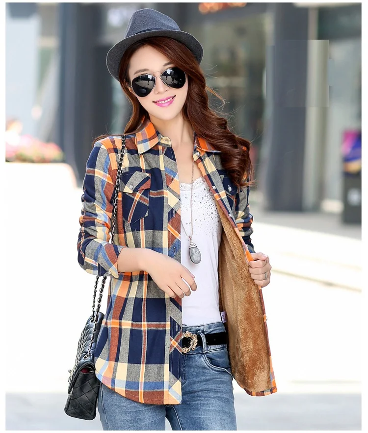 Зимние теплые блузки, женские осенние Топы, пальто, женские рубашки, толстые бархатные рубашки с длинным рукавом, рубашка в клетку, хлопковый топ
