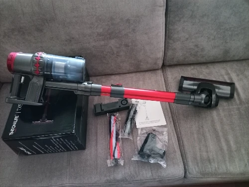 Первая установка ручки с вакуумной частью трудно, потому что «соединение» трудно сделать между этими двумя частями, но выдавливает много, это сделано и после большей проблемы. Немного, как для первого использования электрического выхода, например. Хорошее соотношение цены и качества, различные советы практичны, а также легкость и плавность использования пылесоса благодаря вращающейся щетке. Я думаю, что срок службы батареи составляет около 30 мин и 15/20 мин при полной мощности. (необходимо, что очень пунктуально, потому что классическое всасывание уже очень хорошее)
