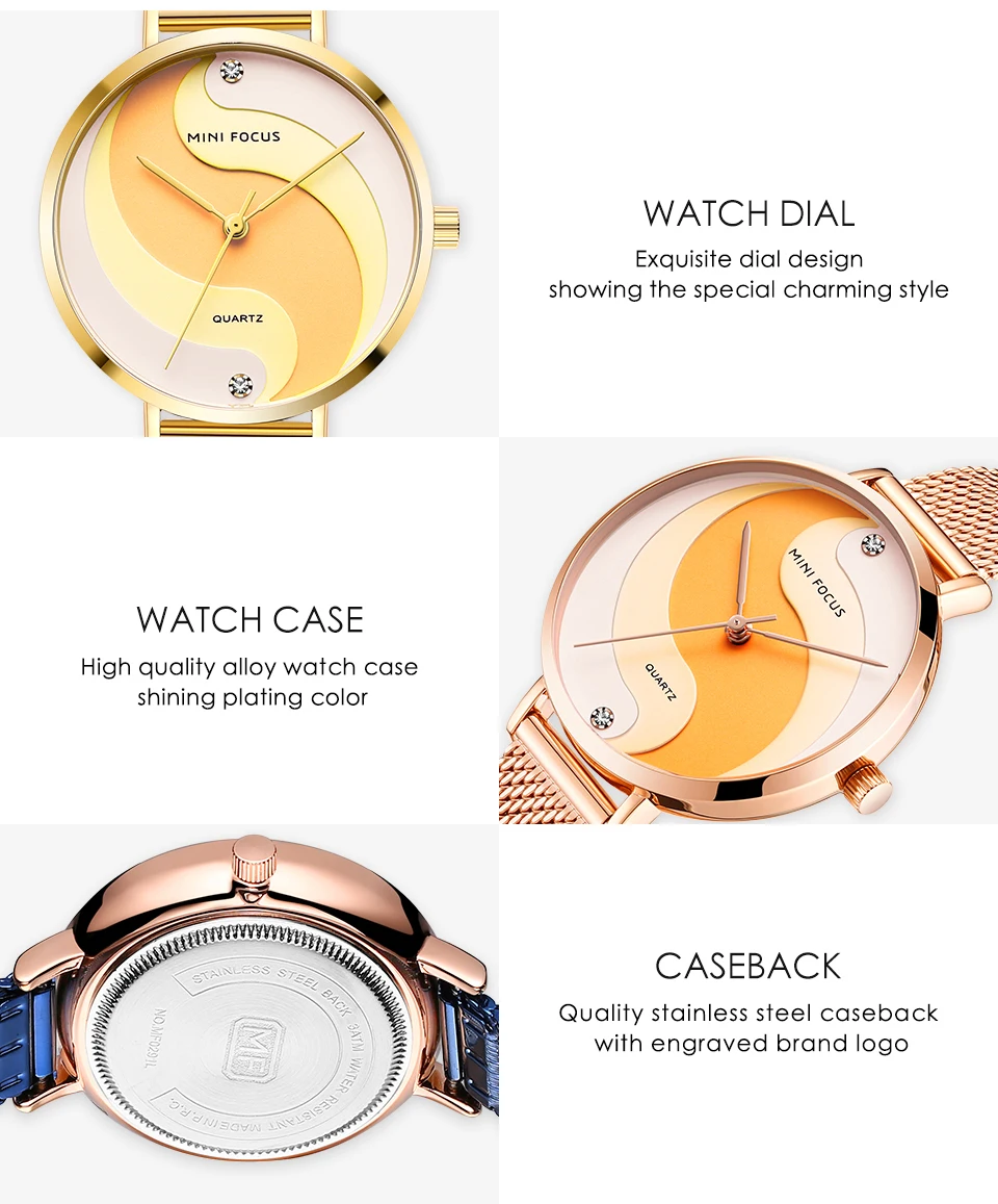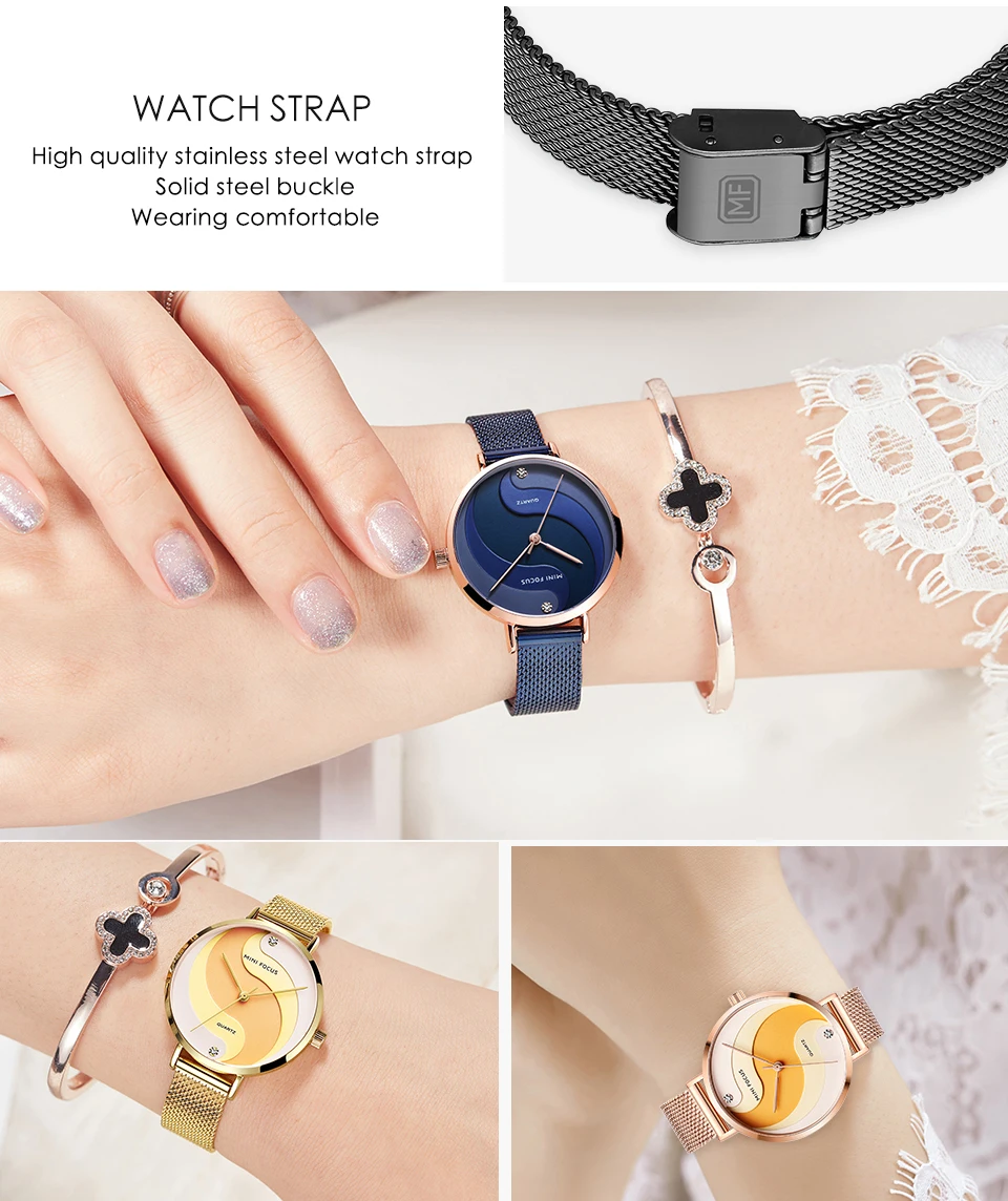 Часы женские MINIFOCUS, кварцевые простые и элегантные, с золотистым сетчатым ремешком, 2020