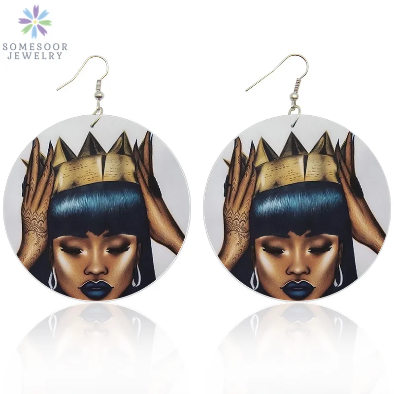 SOMESOOR меланин поппин королева вьющиеся деревянные висячие серьги...