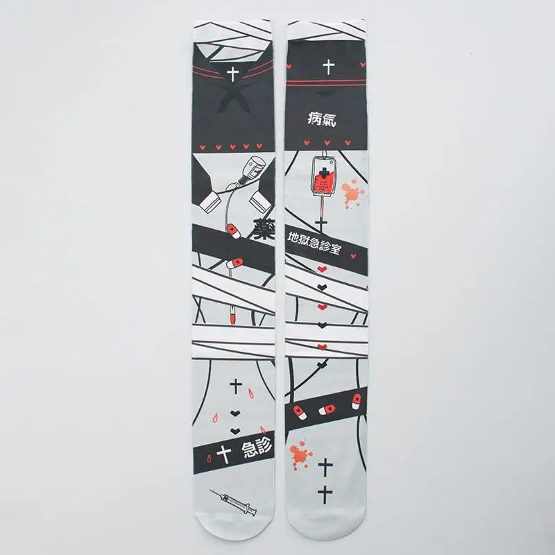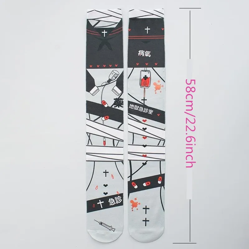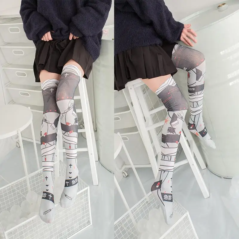 Чулки медсестры для косплея для женщин пикантные аниме узорные Мультяшные высокоэластичные Чулки Бархатные колготки аниме чулки